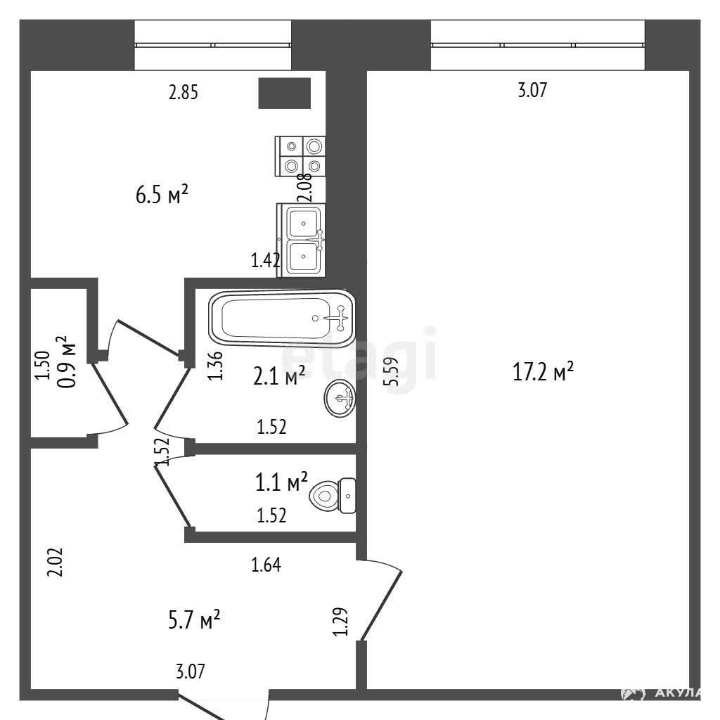 Объект представляет собой практичное решение для первого приобретения, инвестиции или комфортного проживания. Квартира не угловая, что обеспечивает сохранение тепла в зимний период. Планировка функциональна: изолированная комната 17, 2 кв. м, кухня 6, 5 кв. м и раздельный санузел. Состояние помещения предполагает капитальный ремонт, что позволяет новому владельцу создать интерьер с нуля согласно своим предпочтениям и без необходимости переделки чужой работы.