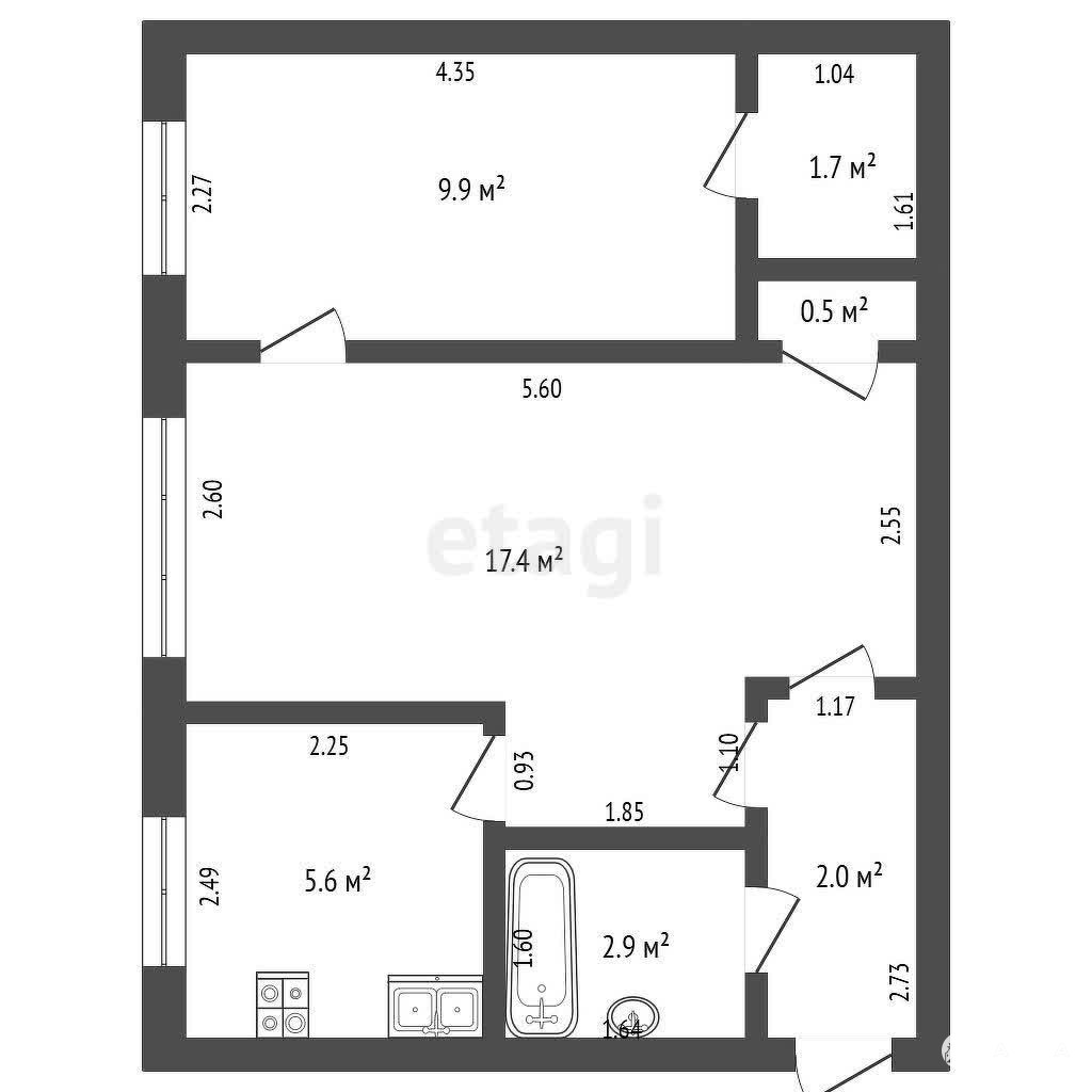 - общая площадь 40 кв.м; кухня 5.6 кв.м;