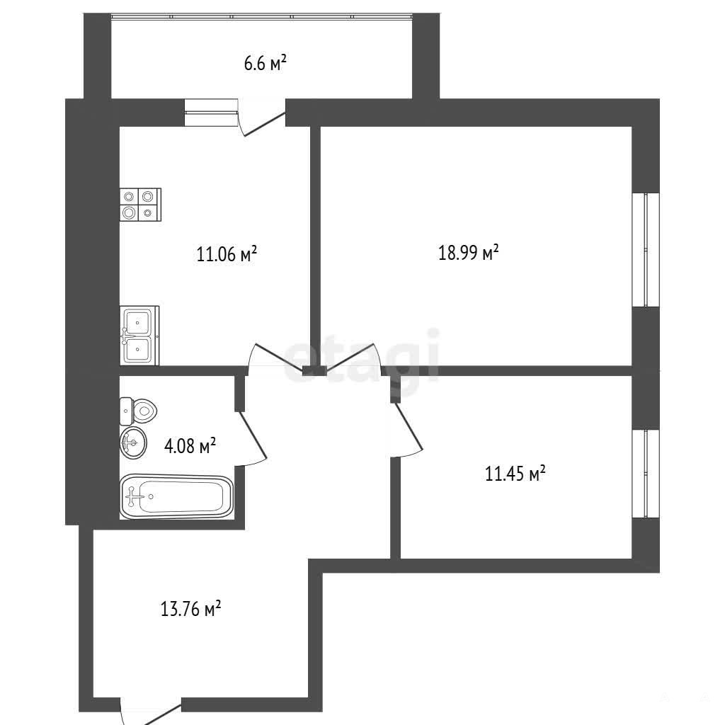 Продается двухкомнатная квартира в идеальном состоянии в центре города, площадью 59.5 кв. м в современном кирпичном доме 2019 года постройки на улице Лесной, 4 А.