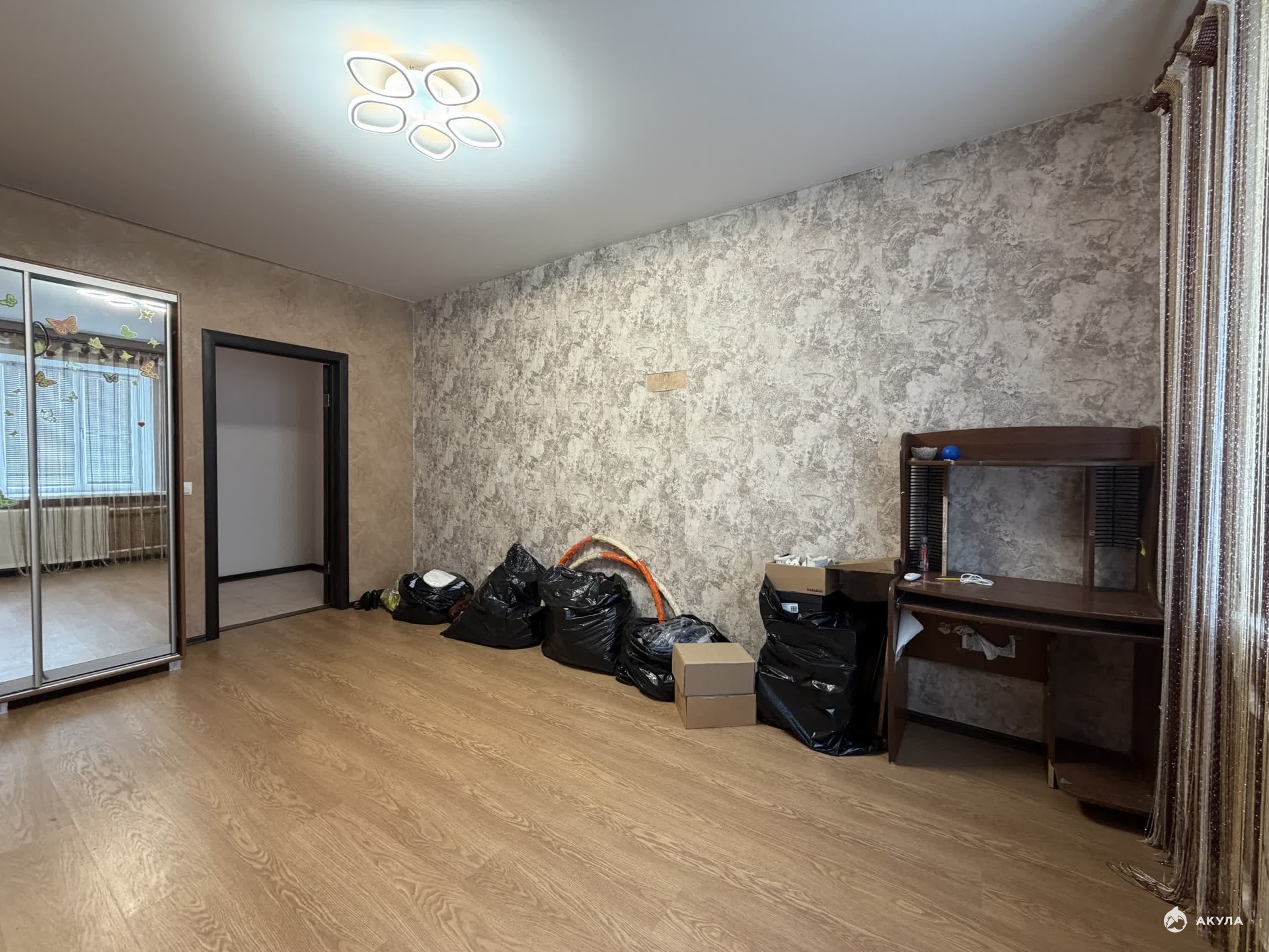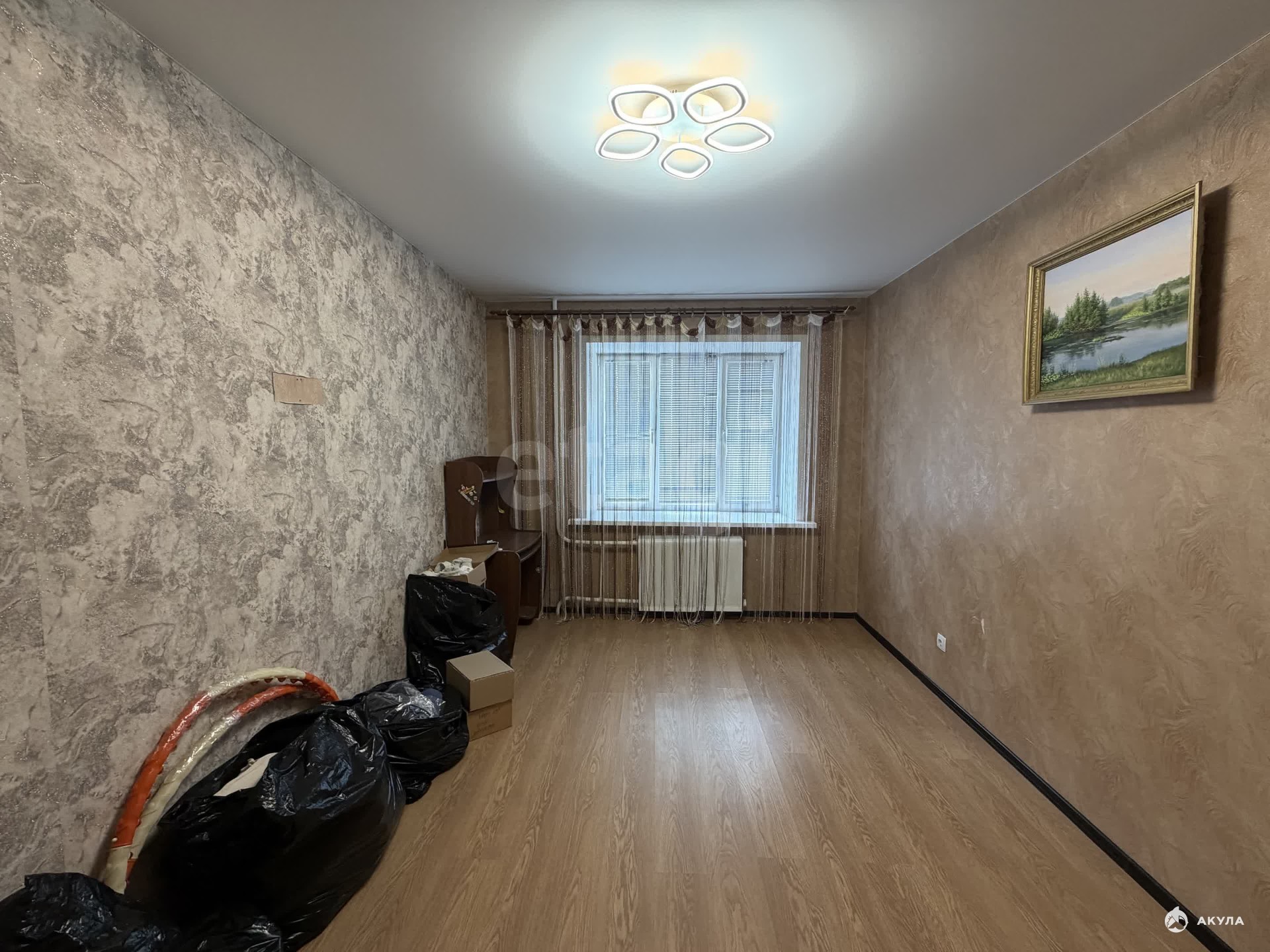 Косметический ремонт, пластиковые окна, на полу — ламинат. Есть балкон.