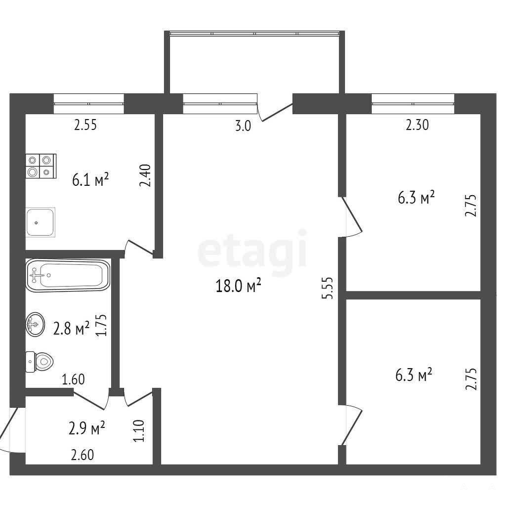 - 6.1 м²
