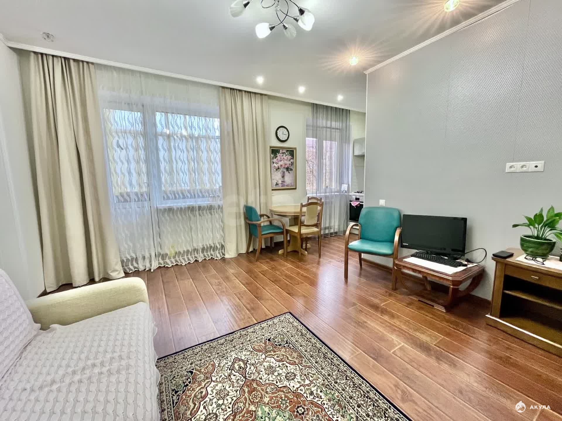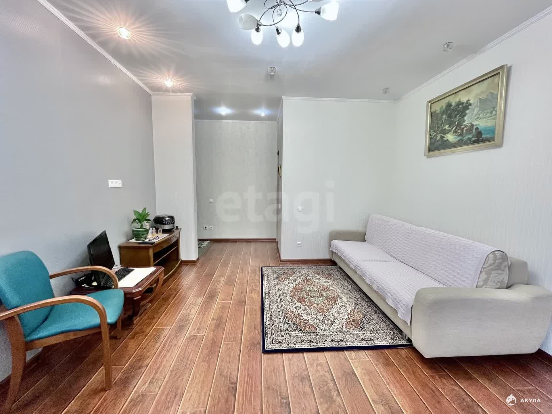 Планировка отличается продуманностью и эффективным использованием пространства: просторная гостиная-кухня площадью 16, 8 кв. м, изолированная спальня 9, 5 кв. м и удобная гардеробная комната 6, 3 кв. м. Из гостиной имеется выход на балкон. Совмещенный санузел отделан кафелем. В квартире выполнен качественный СОВРЕМЕННЫЙ ремонт, готовый для комфортного проживания.