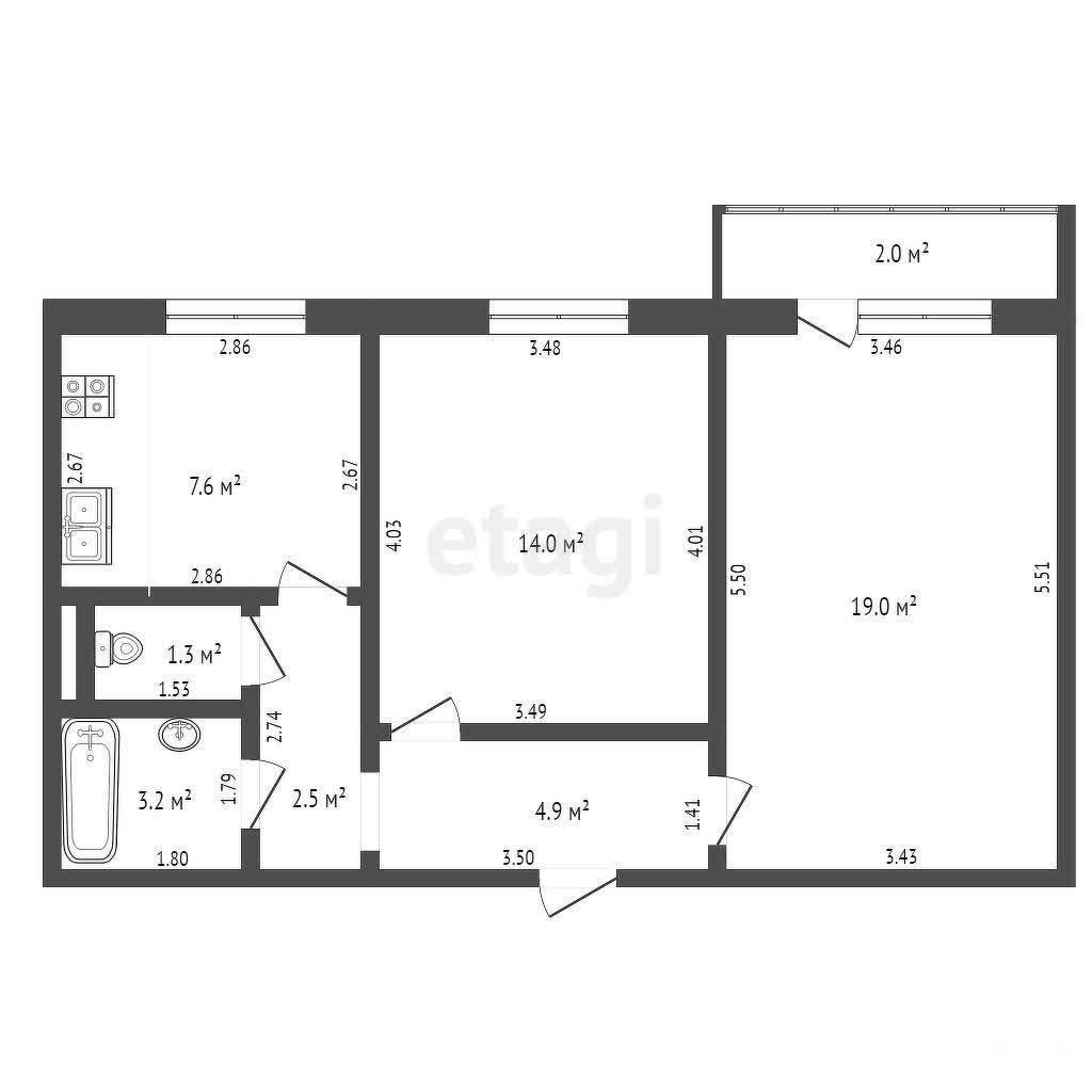 - 7.6 м²