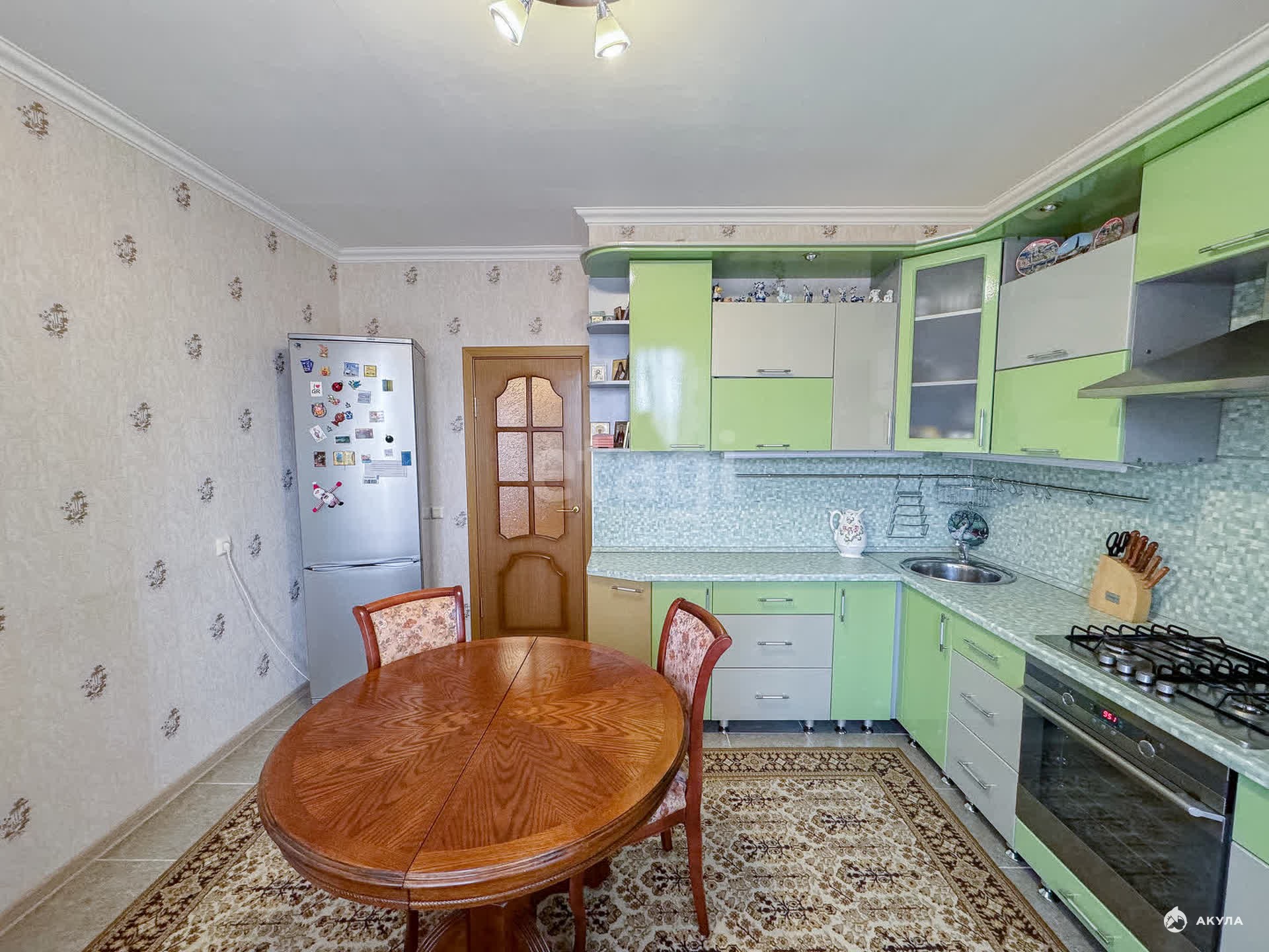 Квартира полностью готова к проживанию — выполнен качественный косметический ремонт с разделкой полов: ламинат в спальнях и практичная плитка в прихожей и на кухне.