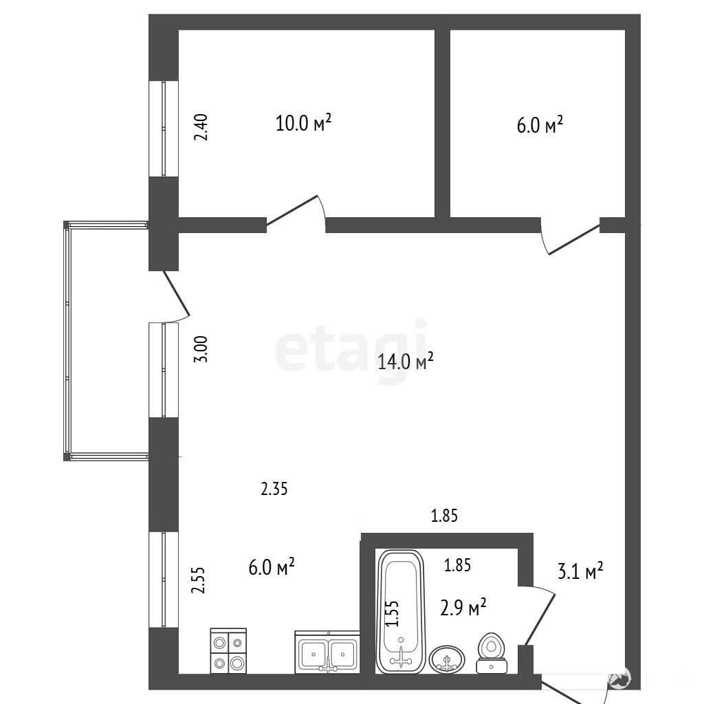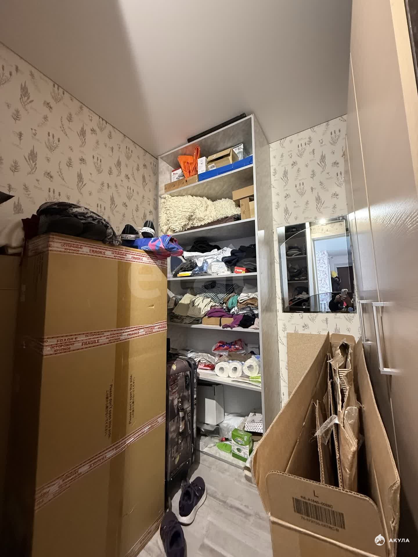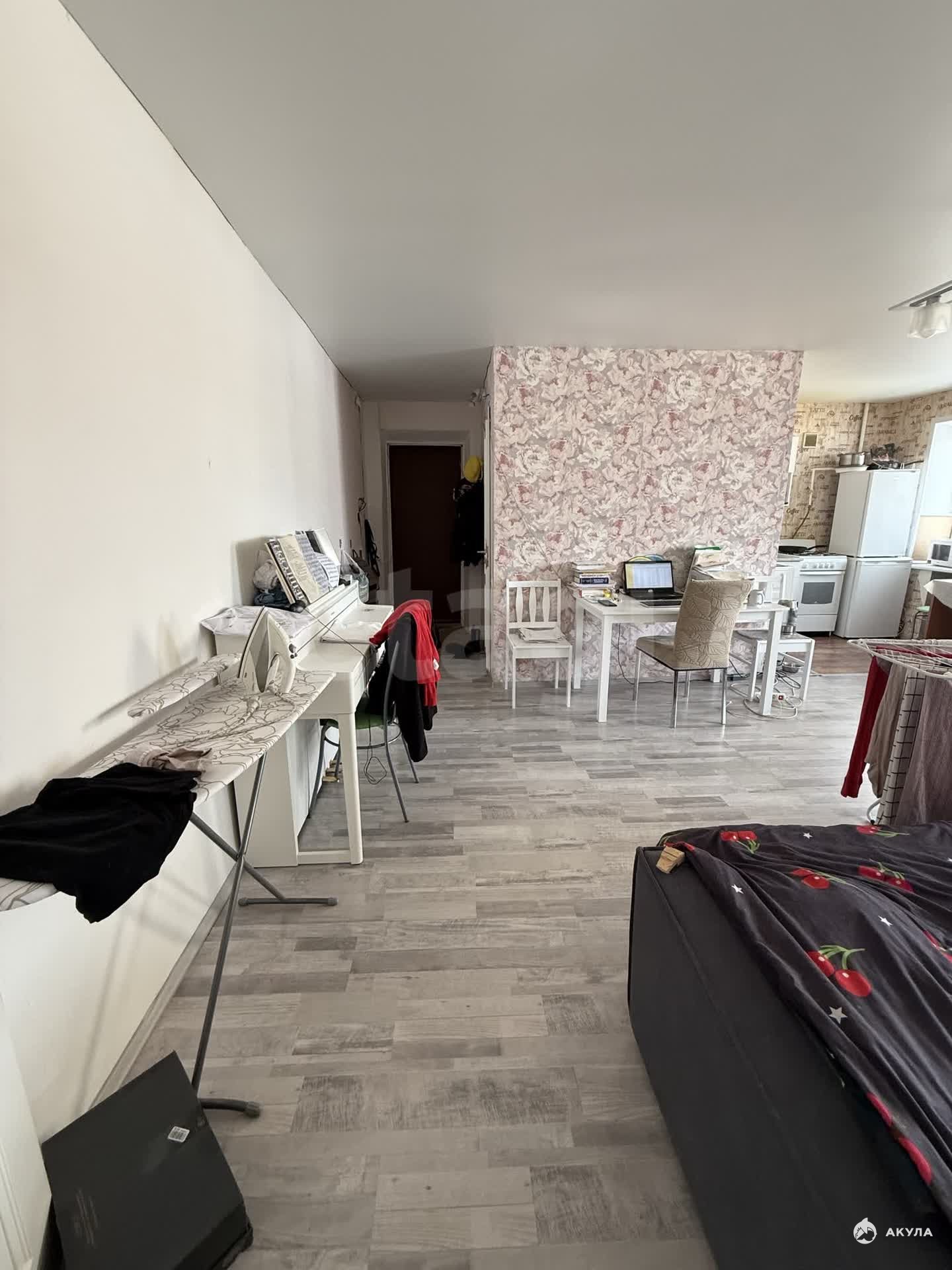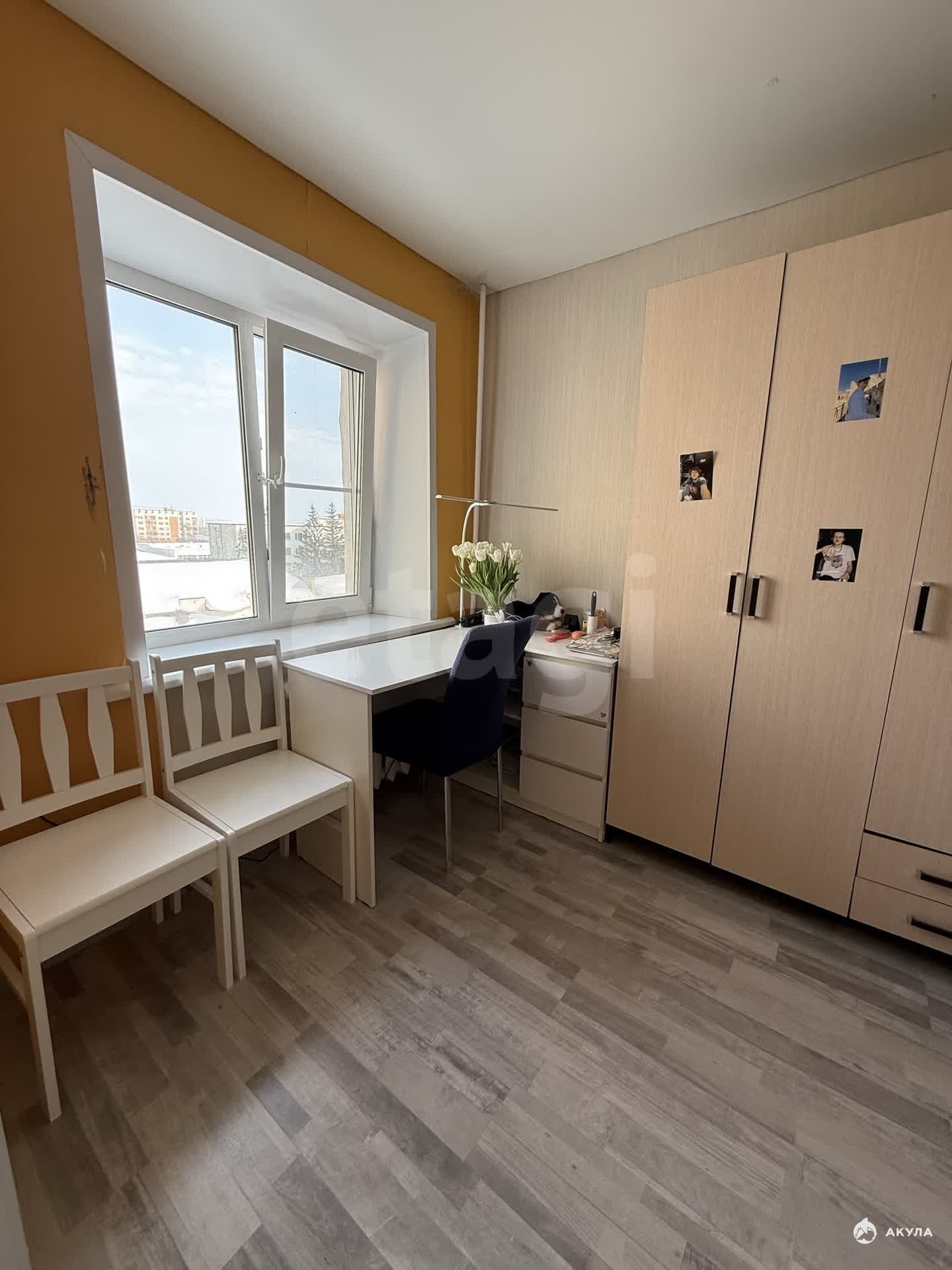 Общая площадь 42, 2 кв.м., находится на 4 этаже 5-этажного кирпичного дома. Первая комната 14 кв.м., вторая комната 10 кв.м., гардеробная 6 кв.м., кухня 6 кв.м., санузел совмещенный. Окна выходят на восток. Рядом свободная парковка со шлагбаумом. В квартире выполнен ремонт в спокойных тонах.