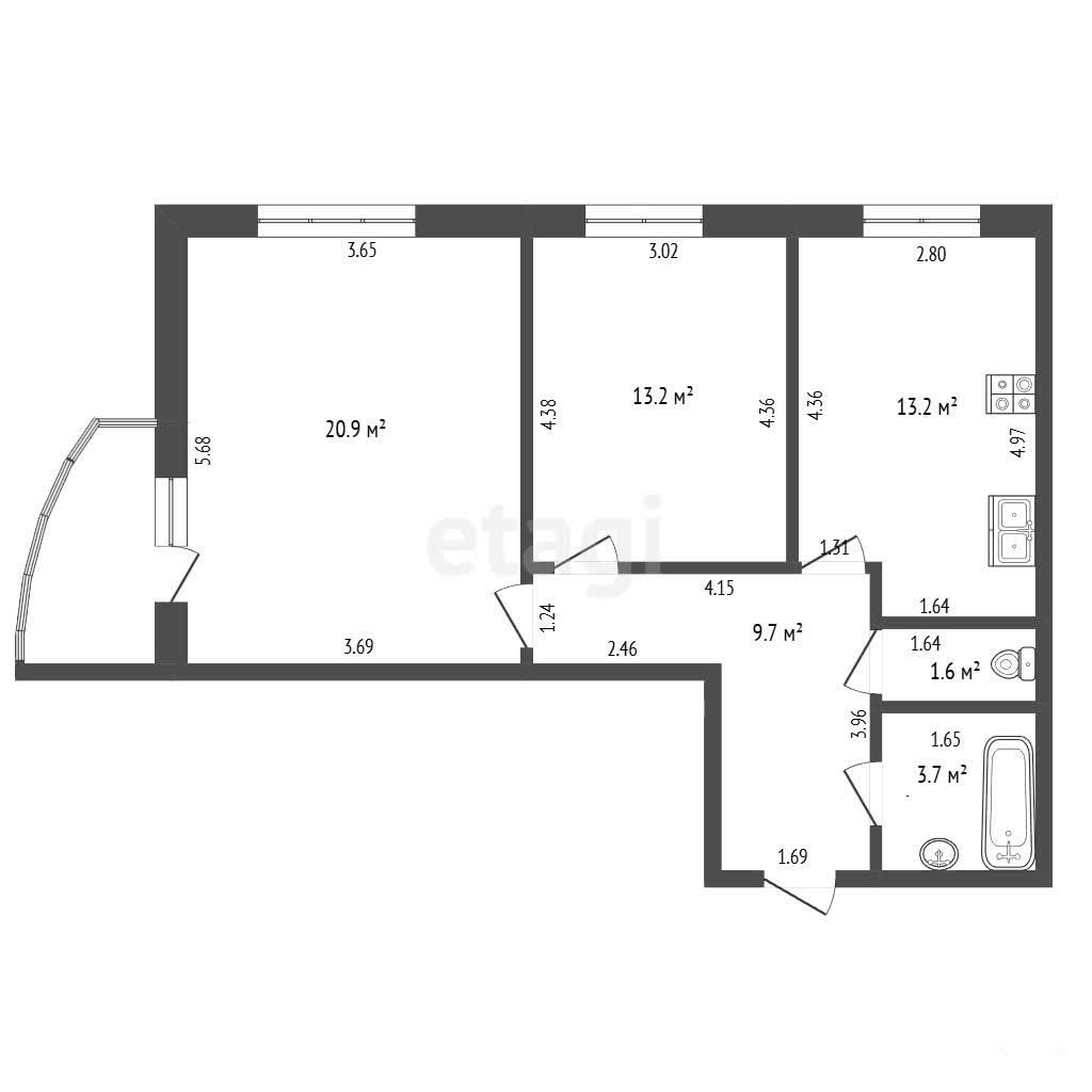Продается прекрасная 2-комнатная кваpтира в ЖК «Юбилейный» с отличным видом на проспект Российской Армии.