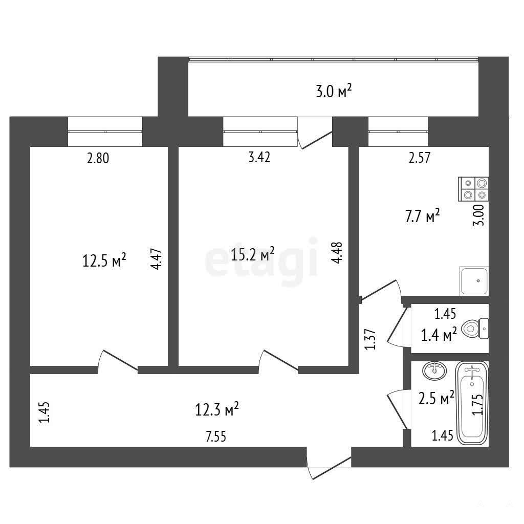 Большим плюсом данной квартиры является наличие отдельной гардеробной (1, 45х1, 60).