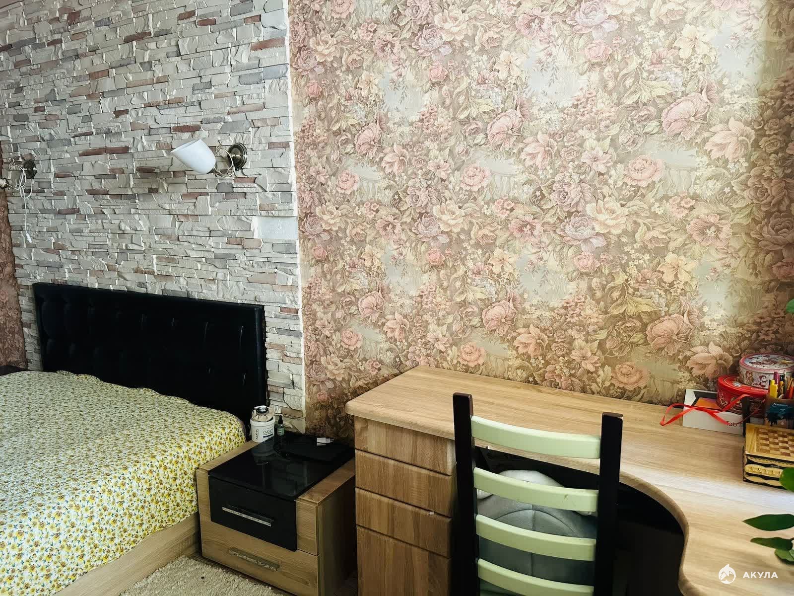 В квартире две изолированные комнаты, совмещенный санузел в кафеле, на полу в комнатах ламинат, на стенах — обои, натяжной двухуровневый потолок, окна ПВХ, вид во двор и на улицу. Квартира очень уютная, не требует дополнительных вложений. Хорошие адекватные соседи. Между этажами кладовка.