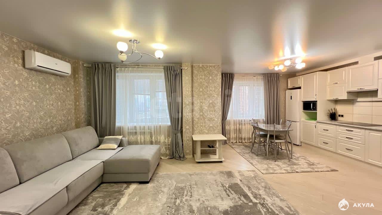 Общая площадь квартиры составляет 58, 7 кв. м, что делает её идеальным выбором для тех, кто ценит пространство и комфорт. Квартира с современным дизайнерским ремонтом, при ремонте использовался качественный строительный материал: натяжные потолки, ламинат, новые межкомнатные двери, дорогая входная железная дверь, санузел раздельный в дорогом кафеле, кондиционер. Два балкона с панорамными окнами открывают прекрасный вид на город.