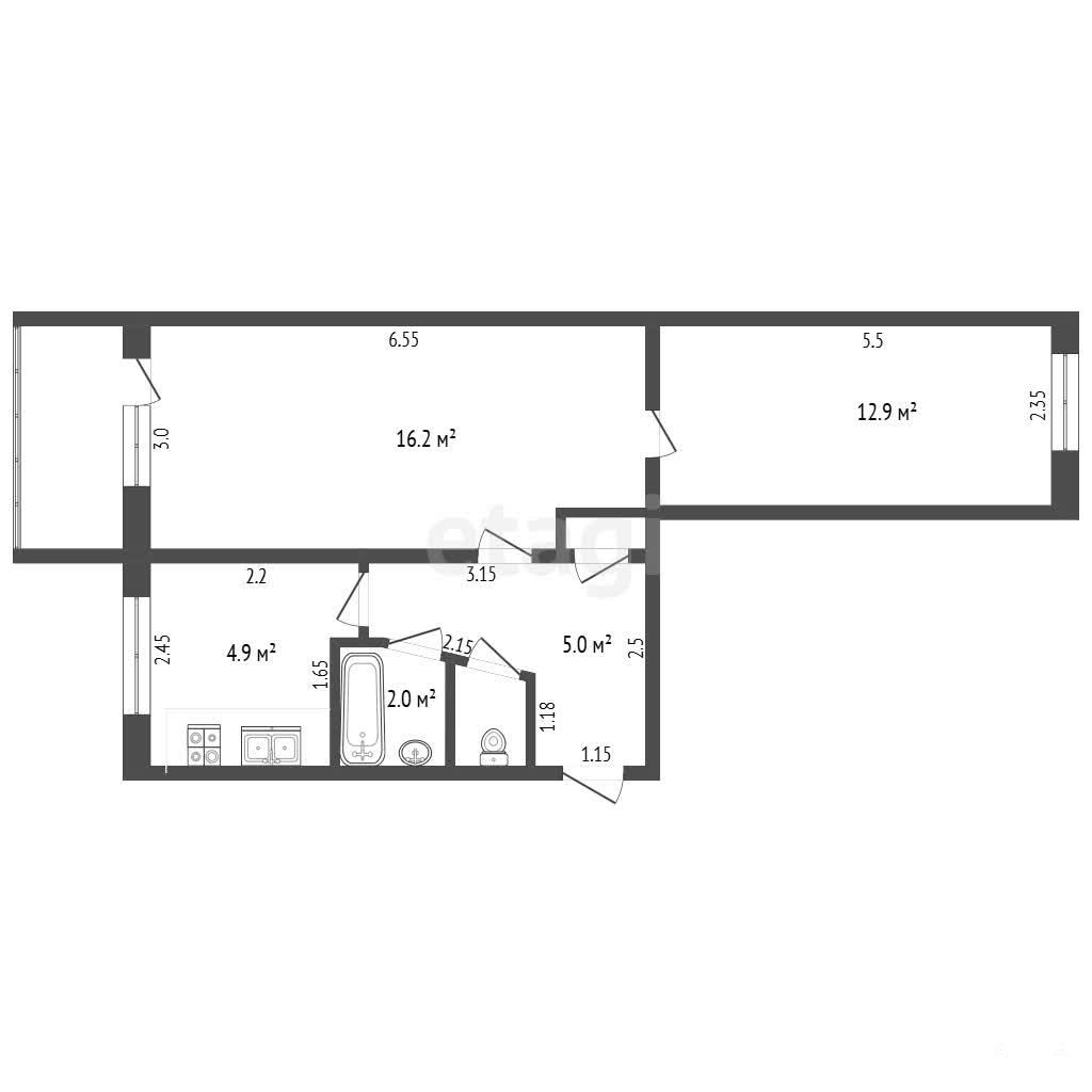Продается светлая двухкомнатная квартира площадью 43 кв. м на пятом этаже кирпичного дома.