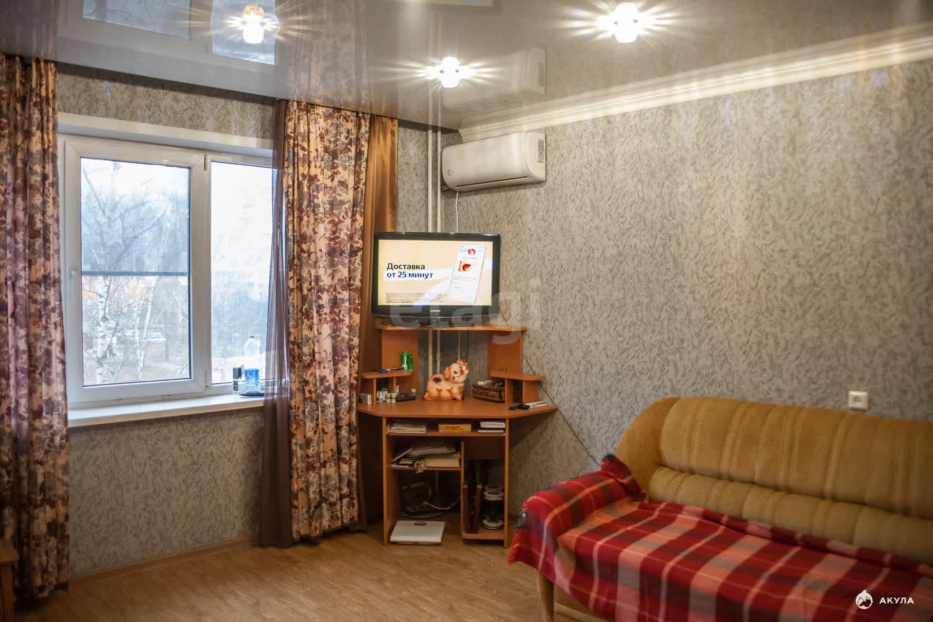 В квартире сделан косметический ремонт: установлены пластиковые окна, в зале - стильный натяжной потолок, на полу — качественный линолеум, кондиционер подарит прохладу в жаркие дни. Раздельный санузел отделан кафельной плиткой, а трубы заменены на надежные полипропиленовые. Застекленная лоджия, отделанная вагонкой, станет вашим любимым местом для утреннего кофе или вечернего отдыха.