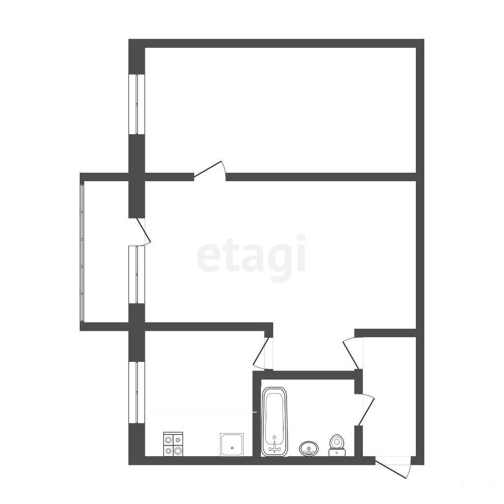 Балкон застеклен пластиковыми окнами, что позволяет использовать его как дополнительное полезное пространство. В санузле выполнен полный цикл отделочных работ: стены и пол облицованы керамической плиткой, установлена новая сантехника. Санузел совмещен.