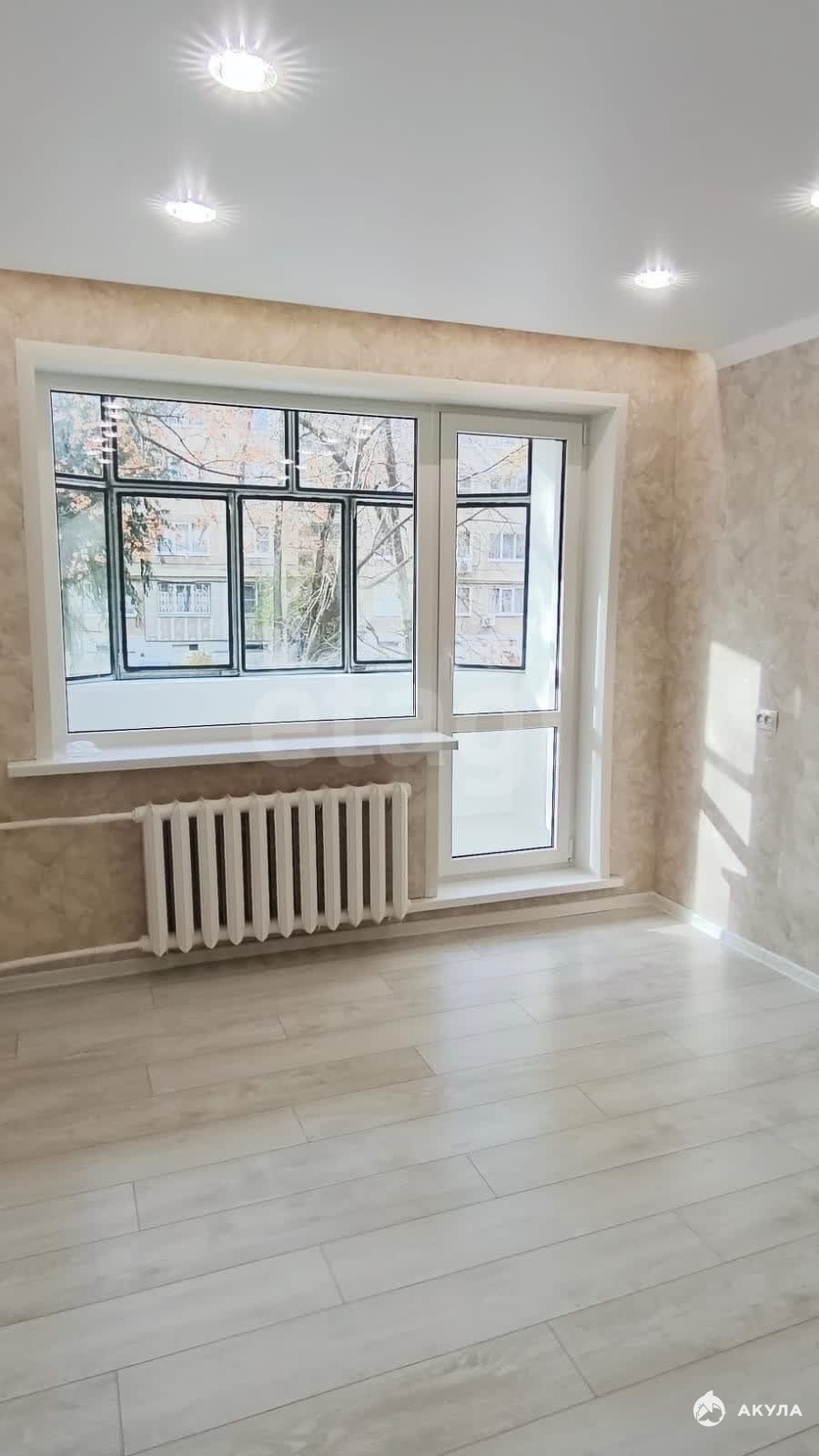 Общая площадь 47, 2 кв. м., кухня 7 кв. м., жилая площадь 32 кв. м. Комнаты изолированные. Все окна выходят во двор. Санузел совмещенный и отделан качественным керамогранитом. Отопление центральное. Выход на лоджию из комнаты.