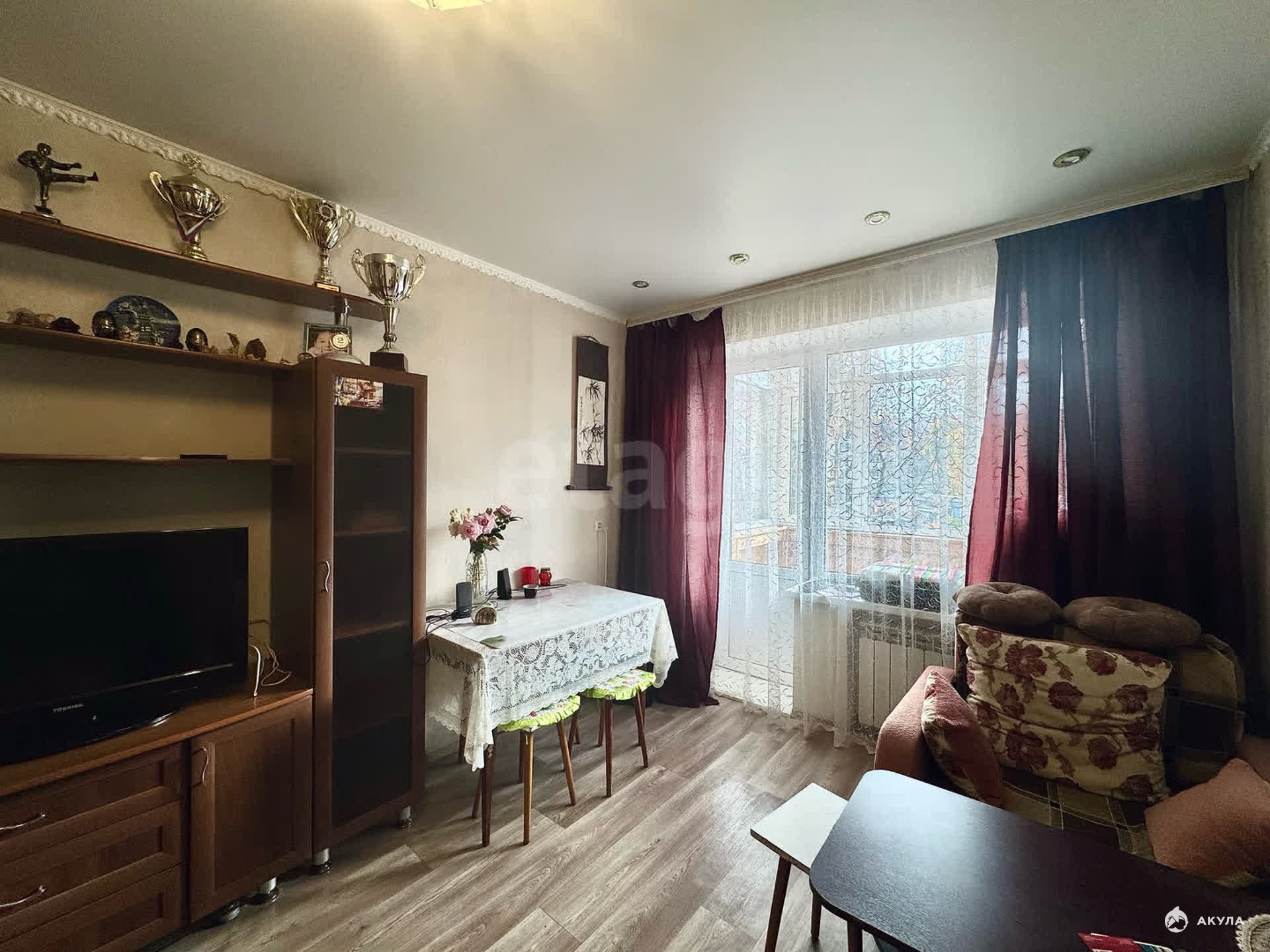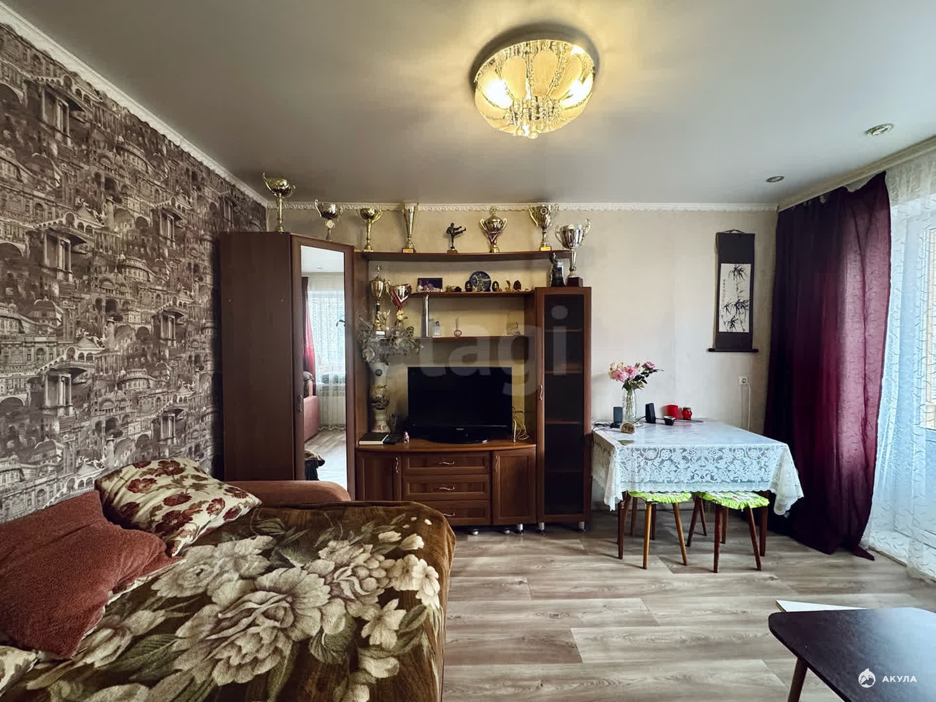 Двухкомнатная квартира площадью 43, 1 кв. м расположена на втором этаже пятиэтажного кирпичного дома в самом центре города.