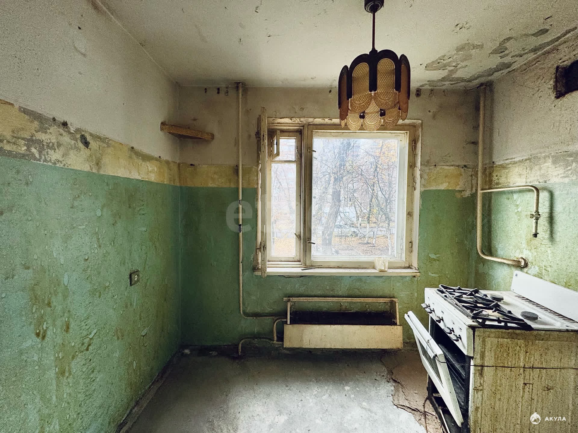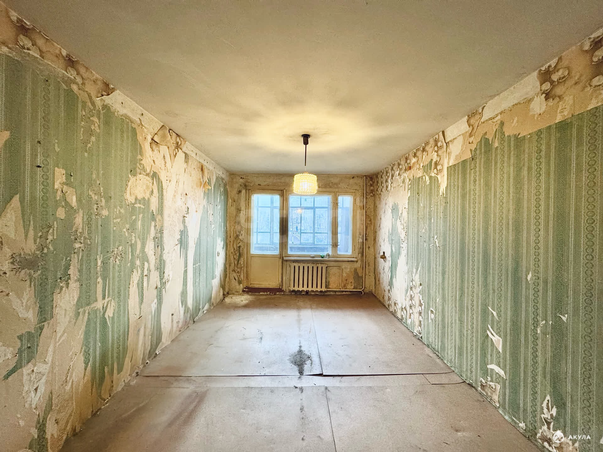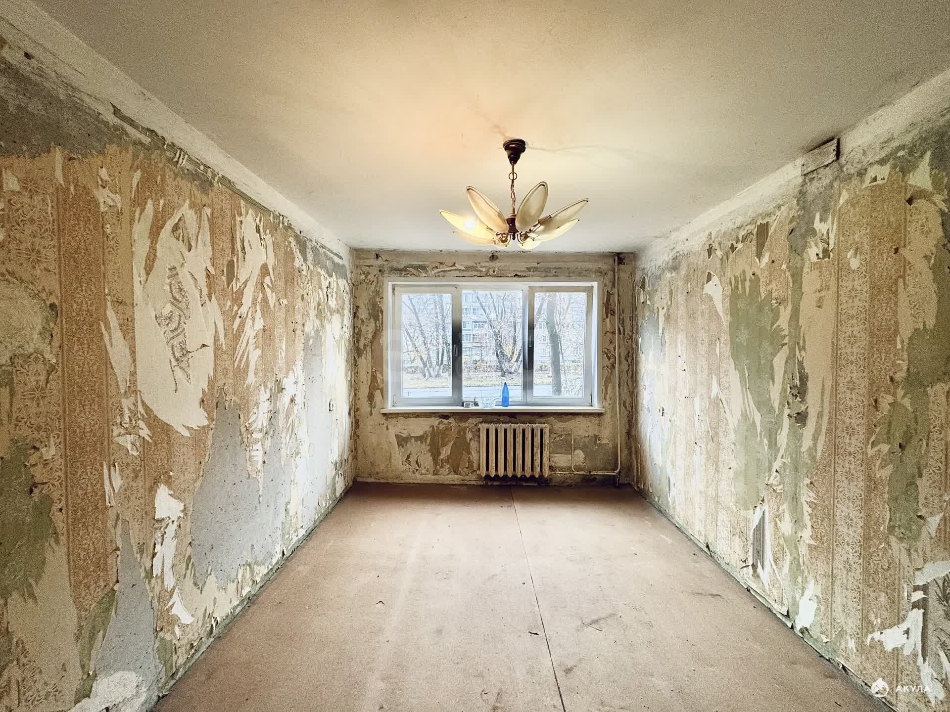Квартира требует ремонта. Окно в одной комнате пластиковое, остальные деревянные. Лоджия застеклена (деревянная рама). Квартира освобождена от мебели и готова к ремонту.