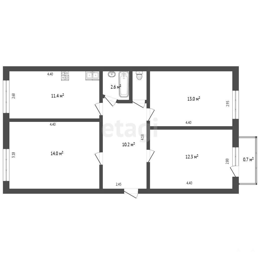 · Кухня: 11, 4 кв.м.