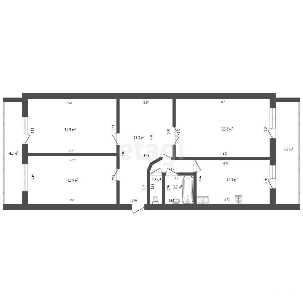 - 61.1 м²