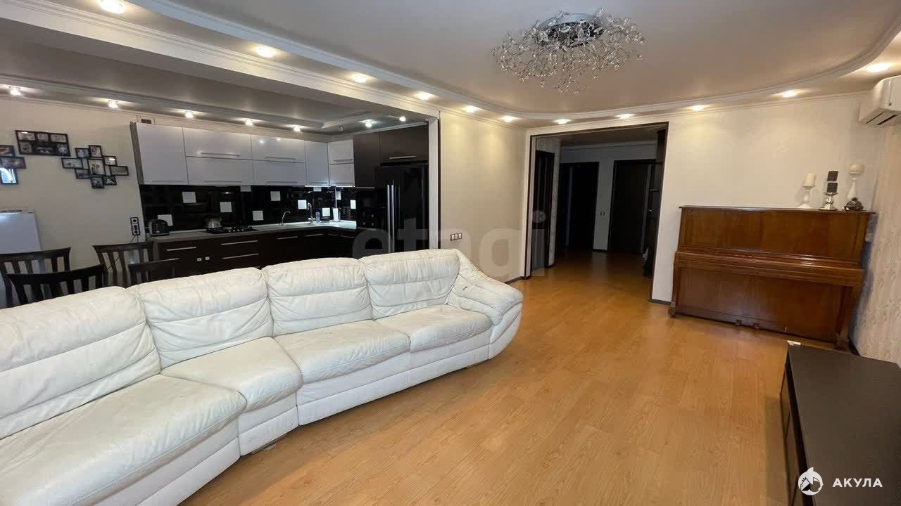 Продается 3-х комнатная квартира, расположенная на 4-ом этаже 10-ти этажного кирпичного дома. 3 квартиры на лестничной площадке. Лифт грузопассажирский. Квартира угловая. Окна на обе стороны дома (на восток и запад). Общая площадь 102, 2 кв.м + 2 лоджии по 8, 4 кв.м. Комнаты изолированные 17, 9 и 19, 9 кв.м. Кухня 14, 1 кв.м объединена с гостиной 23, 3 кв.м. Просторная прихожая, в которой организована гардеробная. Санузел совмещен.