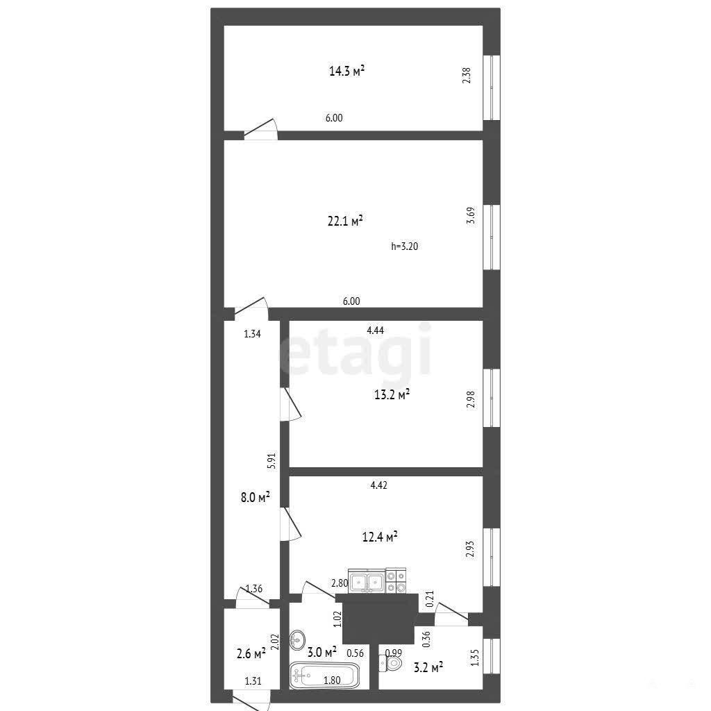 В продажу поступила просторная трёхкомнатная квартира с высокими трёхметровыми потолками.