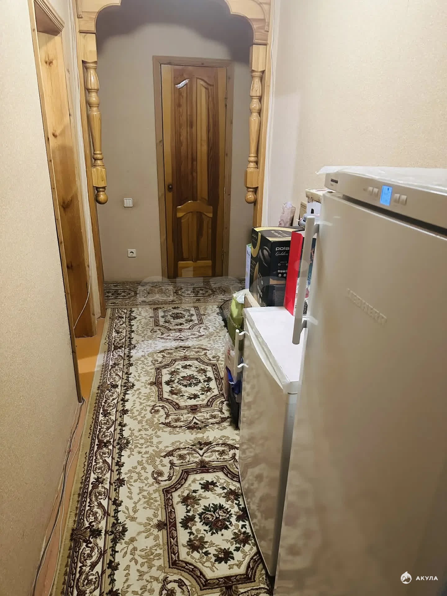 Деревянные полы (в спальнях и зале), на кухне линолеум.