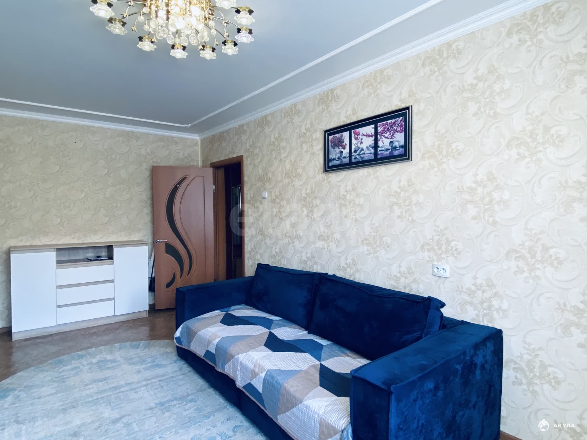 Все потолки выровнены, окрашены акриловой краской. На полу линолеум.