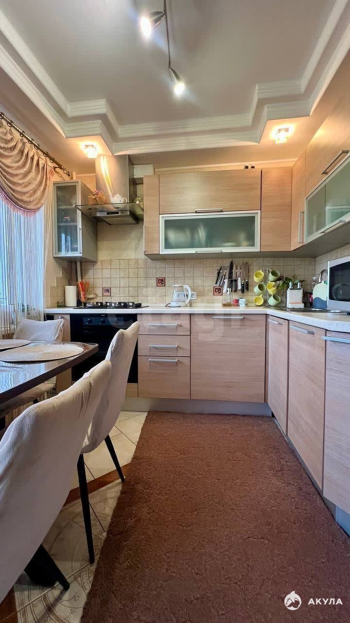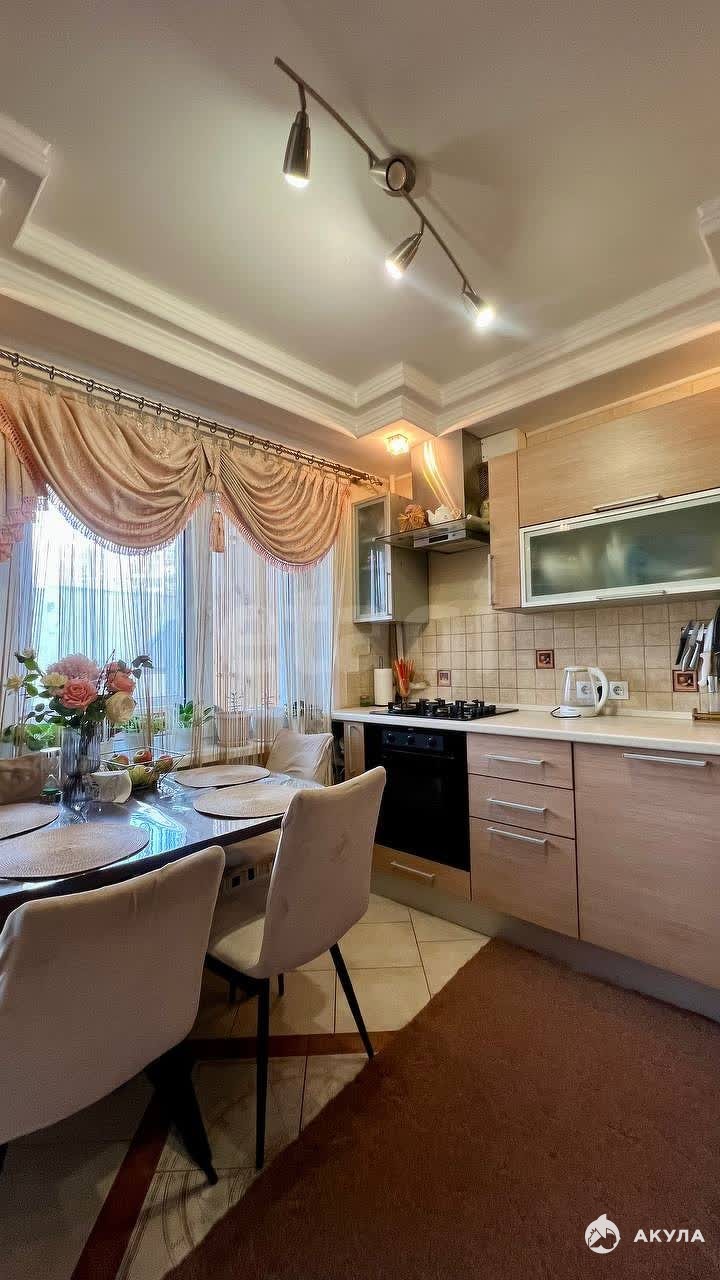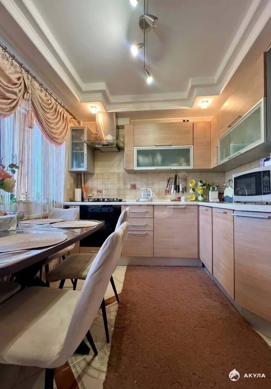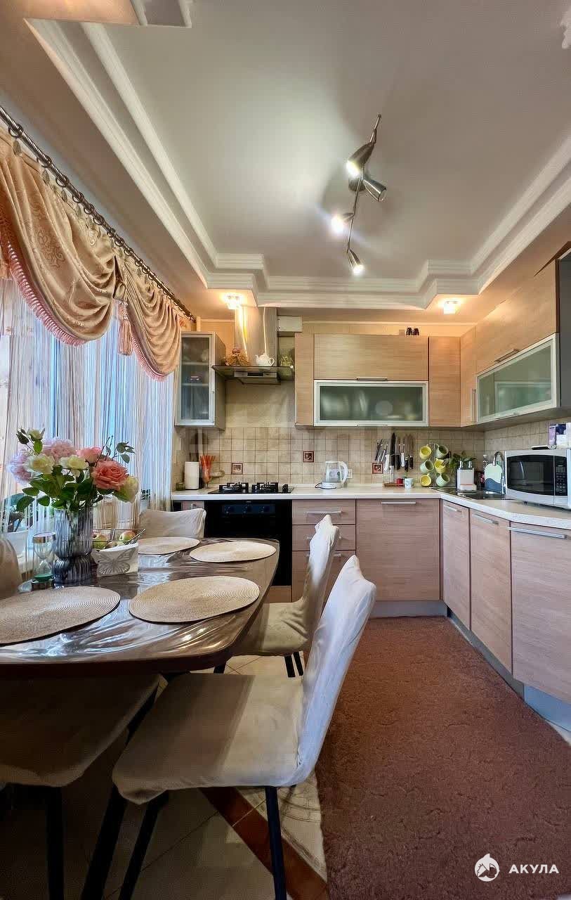 На полу дорогой ламинат. На кухне полы — плитка качественная, коридор тоже плитка. Качественная входная дверь. Окна пластиковые дорогие, шумоизолирующие.