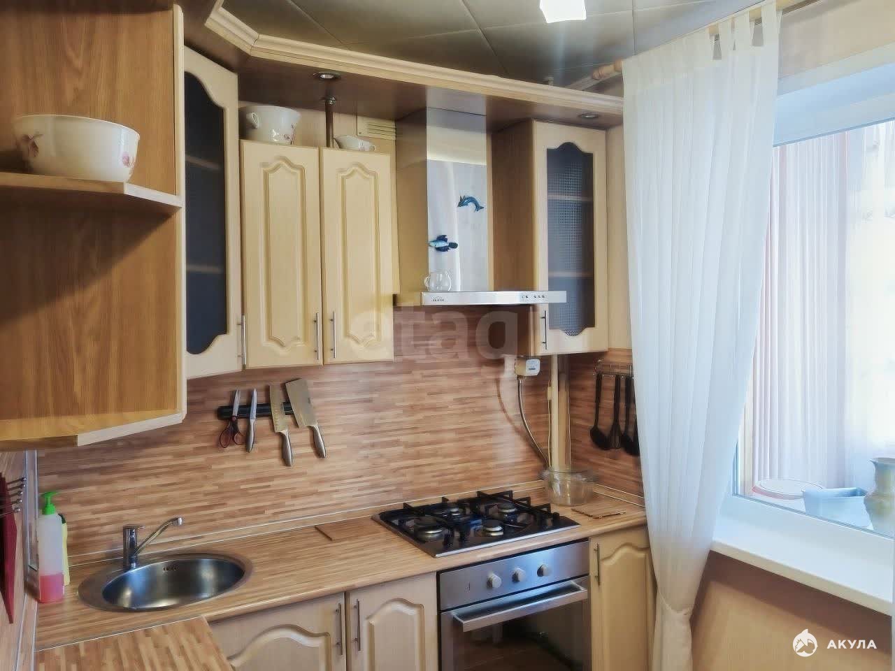 Кухонный гарнитур, варочная панель, духовой шкаф.