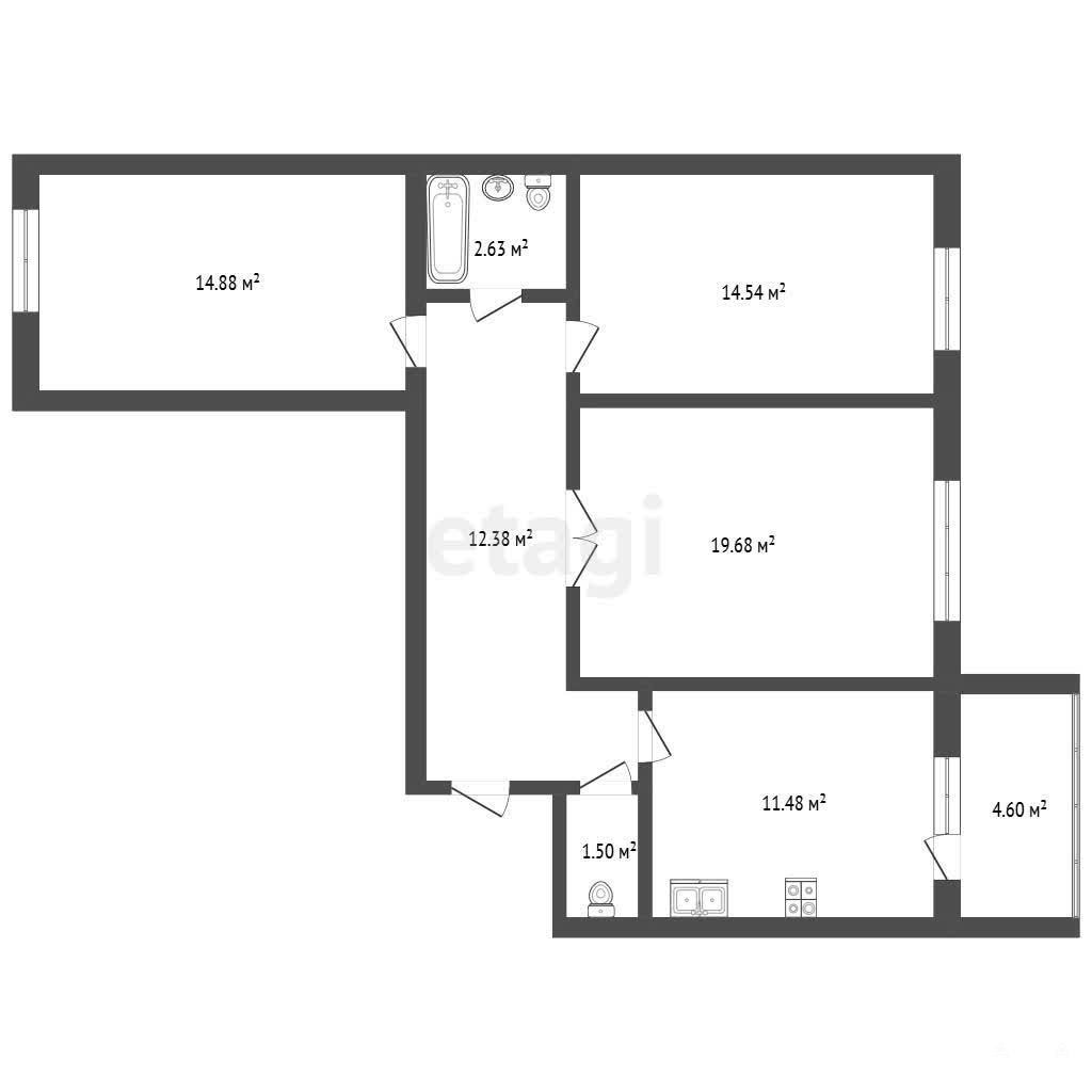 - Дополнительный бонус — вместительный и светлый балкон площадью 4, 6 м², оборудованный удобным доступом прямо из кухни.