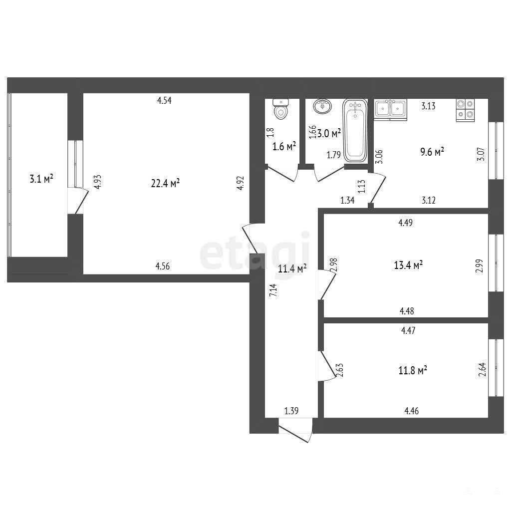 Общая площадь 73, 1 м2.