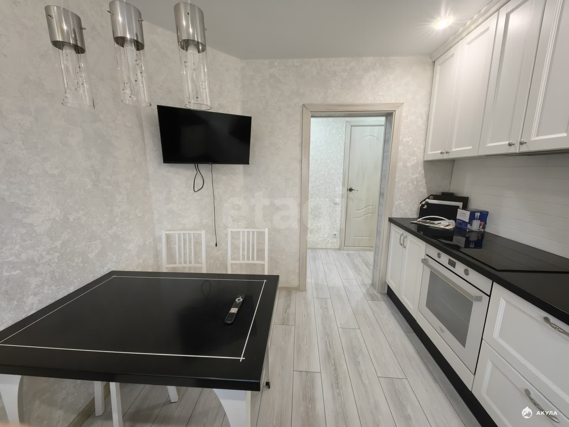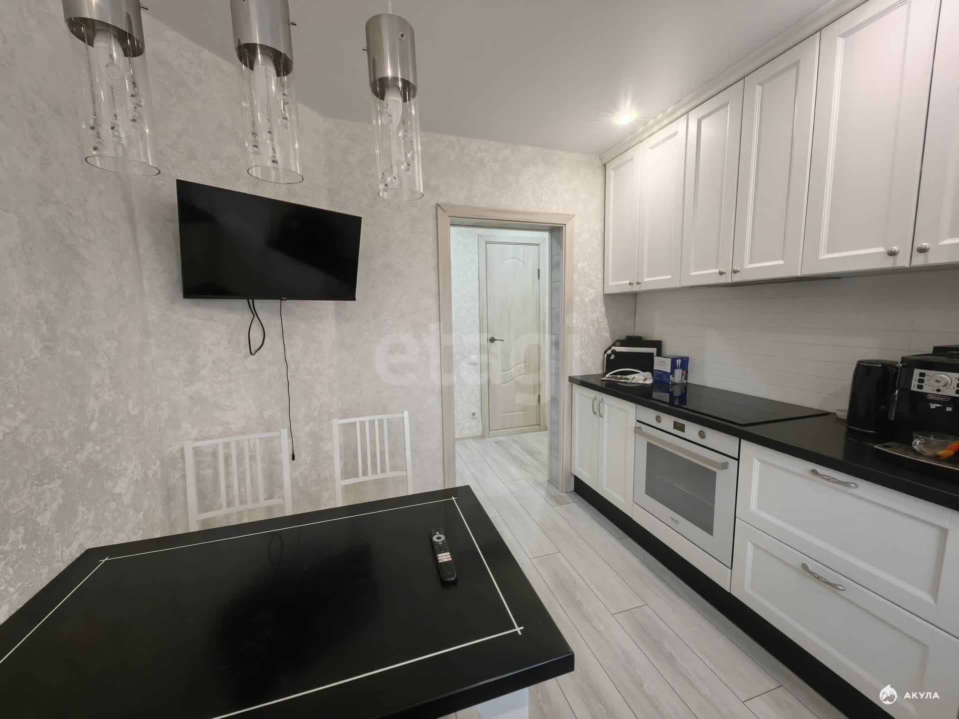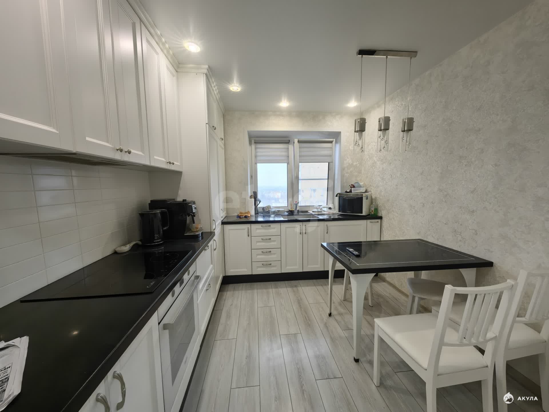 Планировку отличает практичность: кухня оснащена каменной столешницей, индукционной варочной панелью и полным комплектом встроенной техники, включая холодильник и морозильную камеру.
