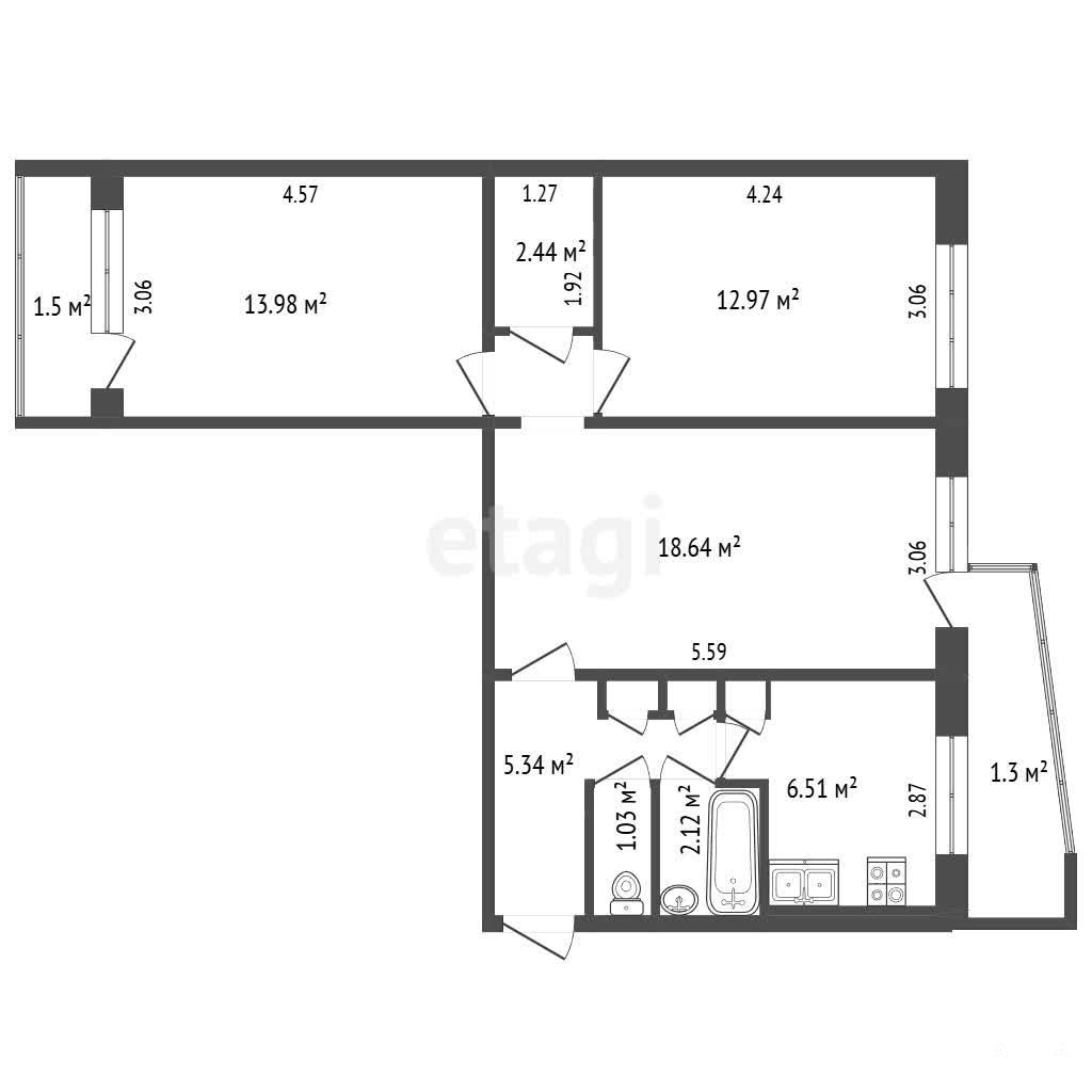 - 6.51 м²