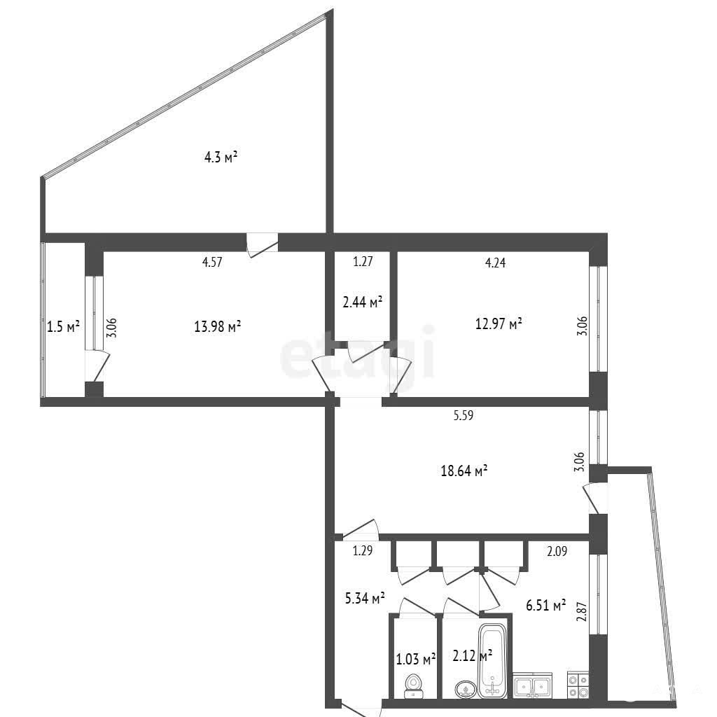 Удобная планировка позволяет грамотно использовать пространство: в квартире есть кладовая для хранения, раздельный санузел и сразу несколько дополнительных зон — два балкона и лоджия.
