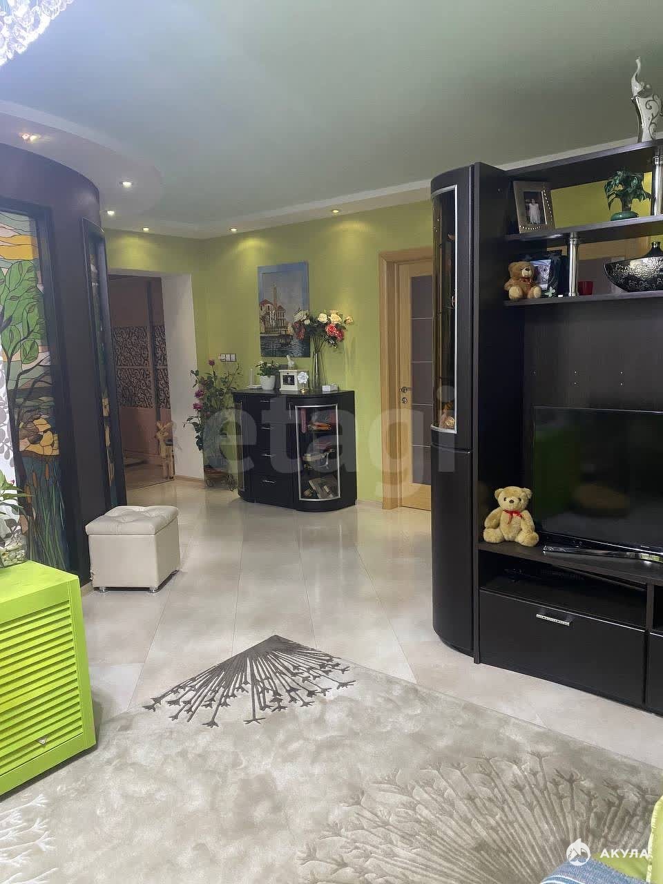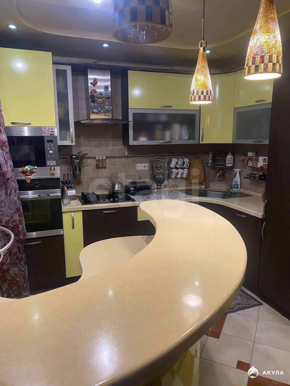 На кухне гарнитур из дорогостоящего материала в качественном исполнении. Витражи заказывались в Италии. Встроенная европейская бытовая техника. Во всей квартире выложен пол из дорогого кафеля, что позволяет сохранять комфортную температуру пола и при этом выдерживать твёрдую и ровную структуру пола. В каждой комнате наклеены качественные итальянские плотные обои, либо выкрашены дорогой специализированной краской. Потолок натяжной, многоуровневый во всей квартире.