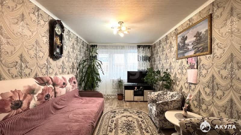 В продаже четырёхкомнатная квартира площадью 63, 9 кв. м. Расположена на 7 этаже 9-этажного дома.