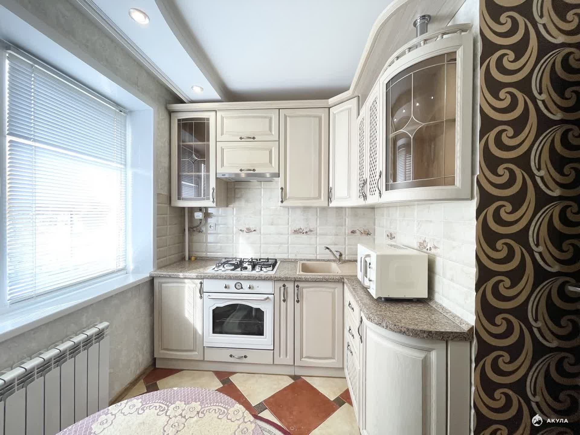 Квартира светлая, с косметическим ремонтом. Потолки выровнены и покрашены, в зале потолок 2-уровневый.