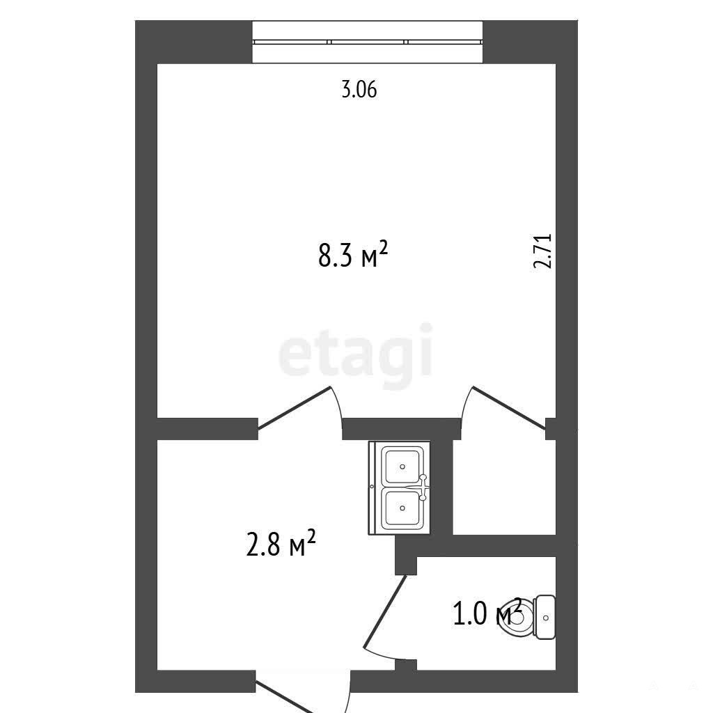 Квартира не угловая, теплая. Общая площадь 12, 8 кв. м. Санузел совмещенный, расположен в квартире и предусмотрен техническим паспортом. По документам — это квартира. Установлены счетчики на горячую и холодную воду.