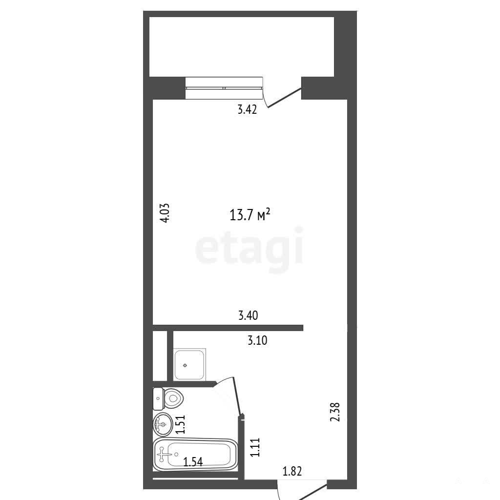 Санузел совмещенный. Индивидуальные приборы учета установлены.