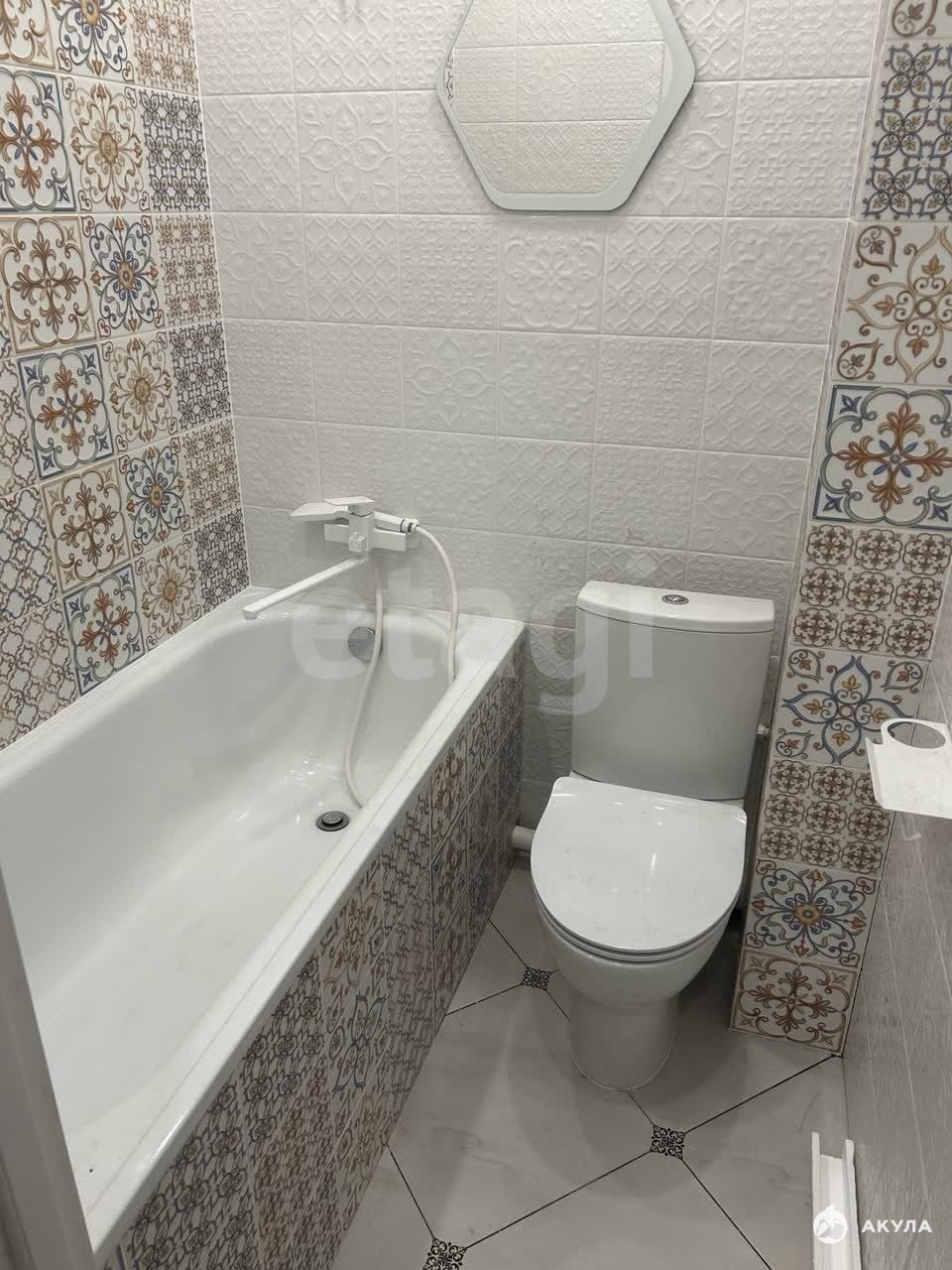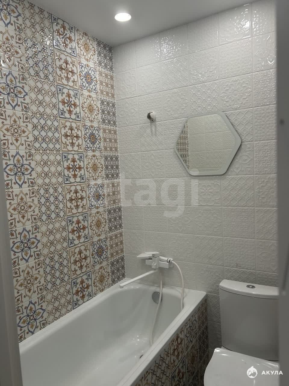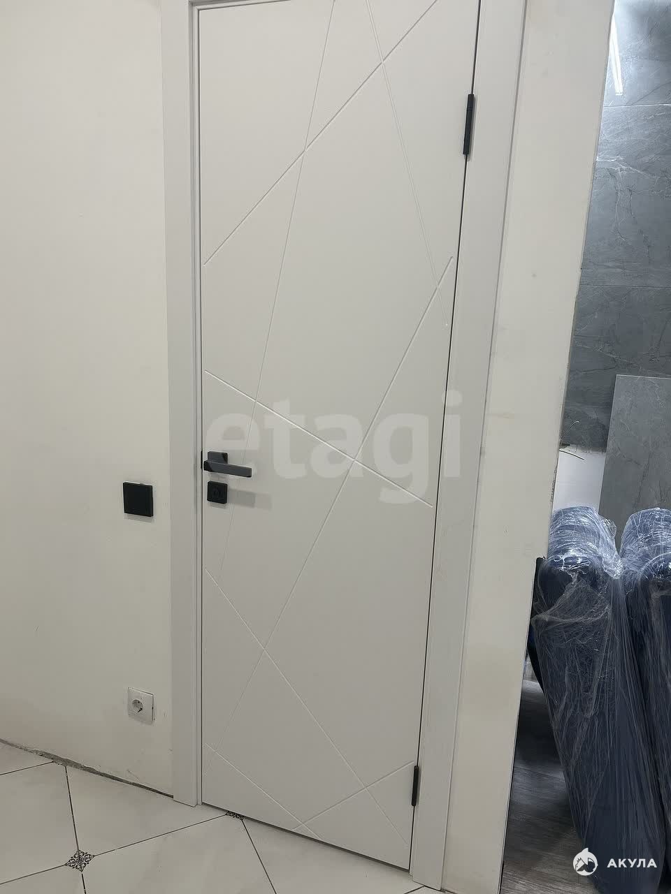 В квартире новый современный ремонт. На полу при входе керамогранит, в комнате ламинат 33 класса. Кухонный фартук отделан керамогранитом. Натяжной потолок с точечным освещением.