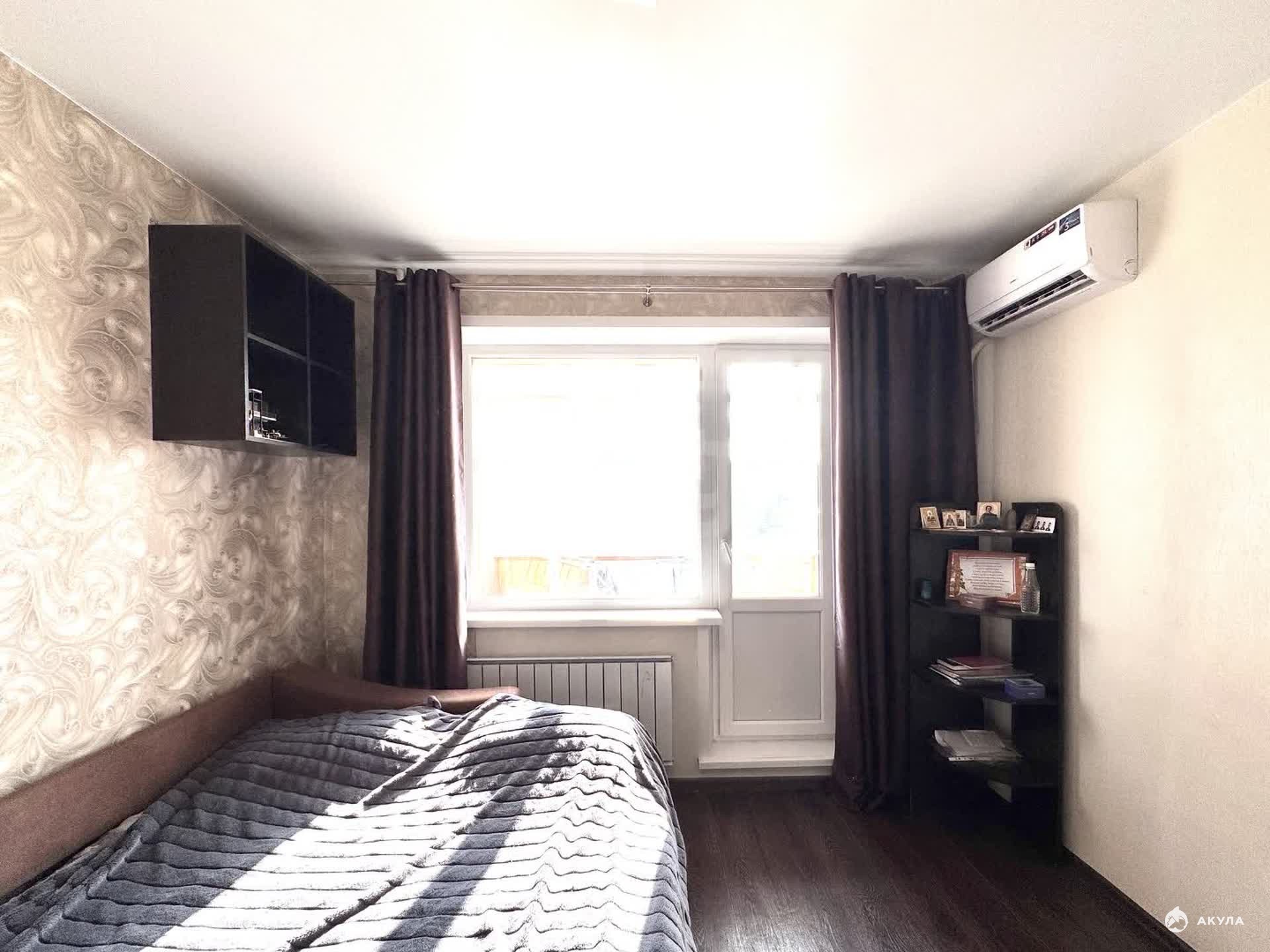 Квартира не угловая, теплая, окно пластиковое, есть застекленный балкон. В студии сделан косметический ремонт, потолок натяжной, на полу линолеум, установлен кондиционер, металлическая дверь.