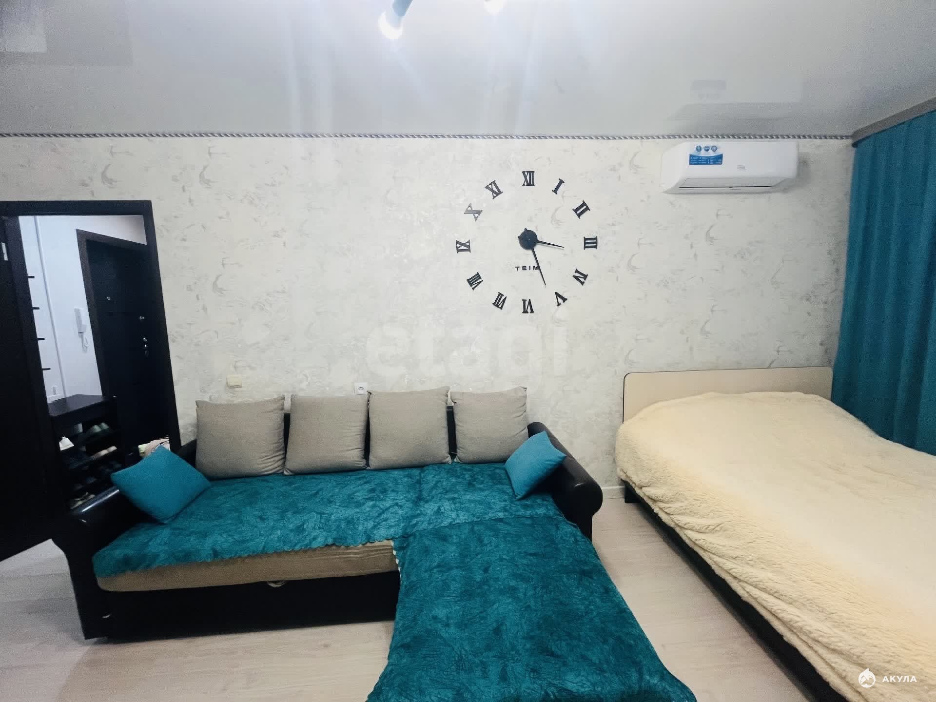 Продается светлая и теплая однокомнатная квартира на пятом этаже с качественной чистовой отделкой, полностью готовой к заселению.