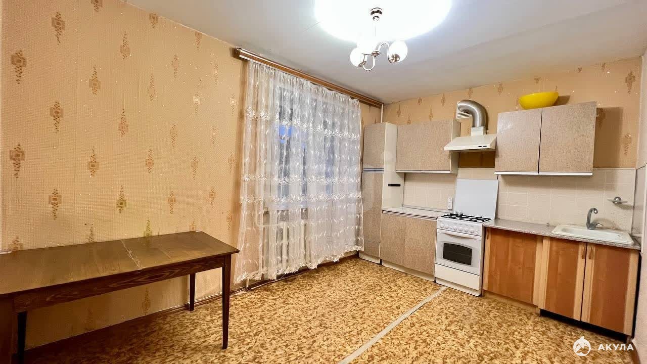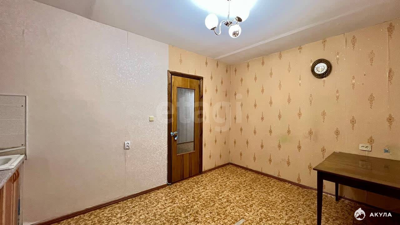 В квартире выполнен косметический ремонт в нейтральной цветовой гамме: стены оклеены обоями, потолки окрашены водоэмульсионной краской, полы покрыты линолеумом. Санузел отделан практичными материалами — стены из пластиковых панелей, пол из кафельной плитки.