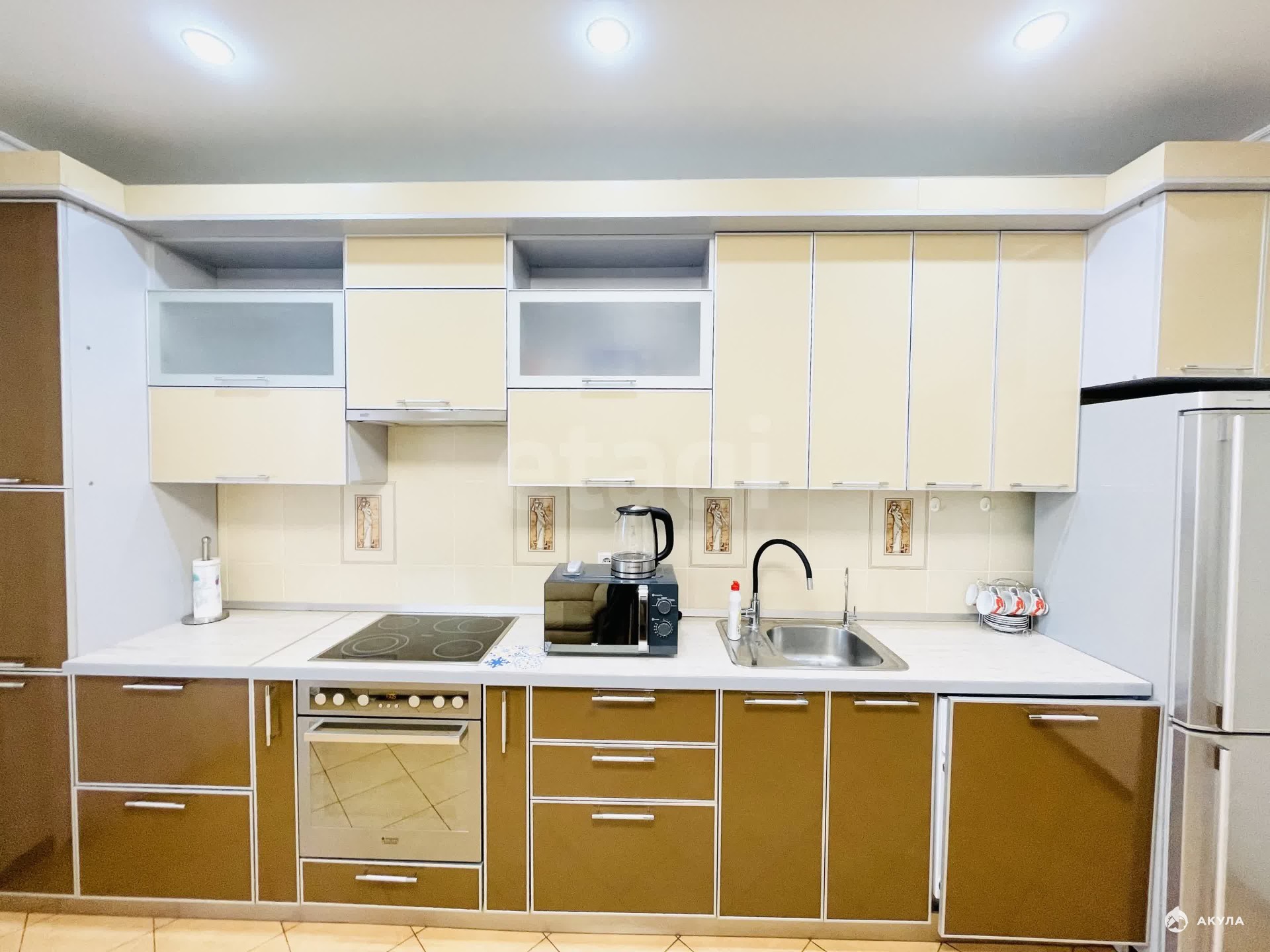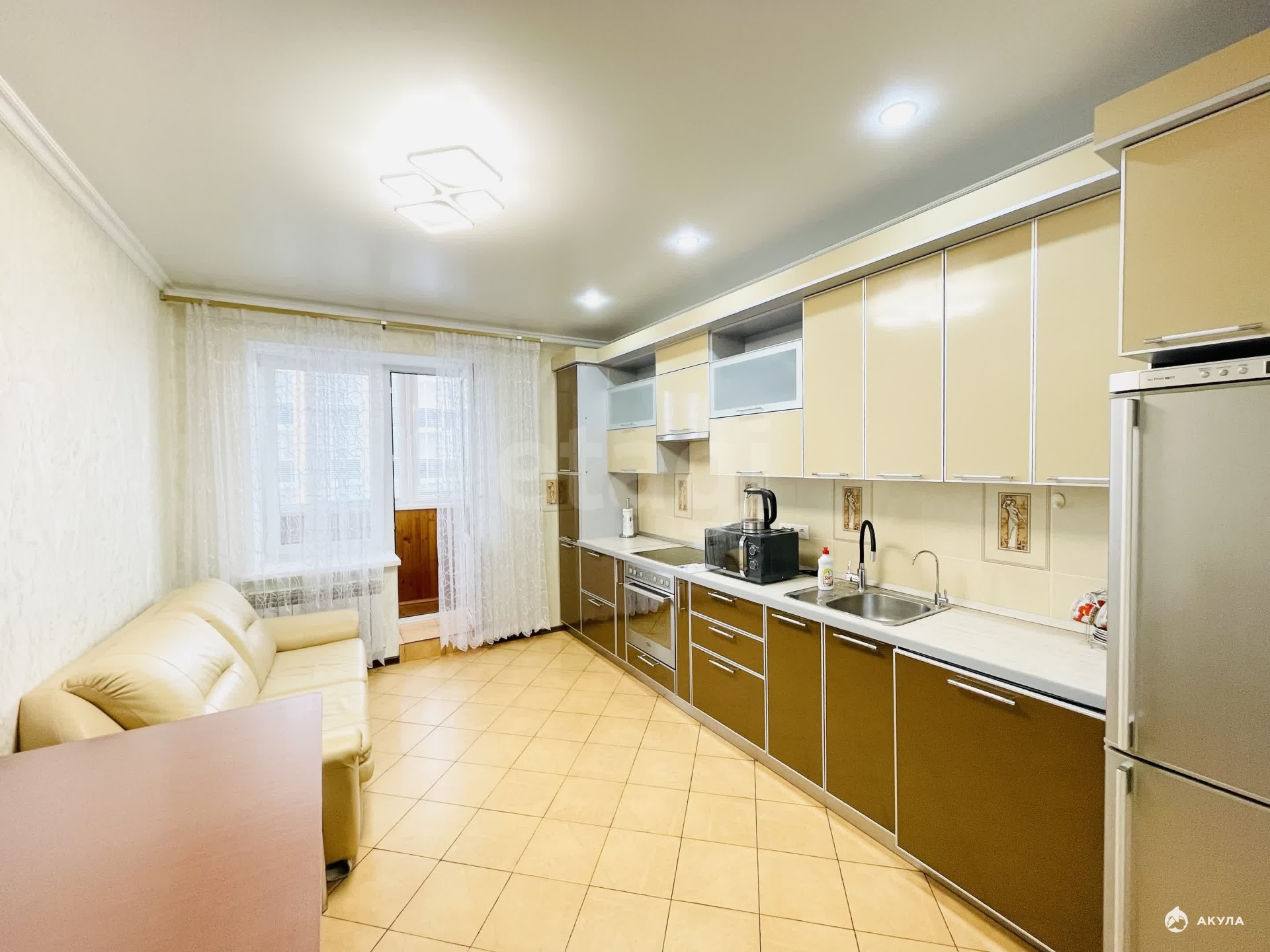 В квартире выполнен евроремонт. Просторная кухня оборудована всем необходимым: холодильник, плита, микроволновая печь и стиральная машина. В гостиной установлен телевизор и шкафы для хранения вещей. В комнате имеется двуспальная кровать и вместительный шкаф.