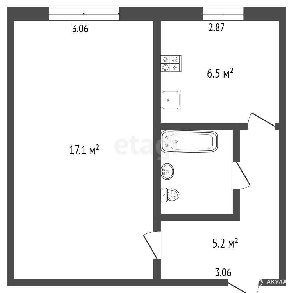 Общая площадь — 32, 7 м², кухня просторная — 9 м², оборудована газовой плитой, вытяжкой, современной мебелью и техникой. В квартире выполнен косметический ремонт, создающий приятную атмосферу. В комнате два спальных места, телевизор с кабельным и цифровым ТВ, санузел раздельный, есть лоджия.