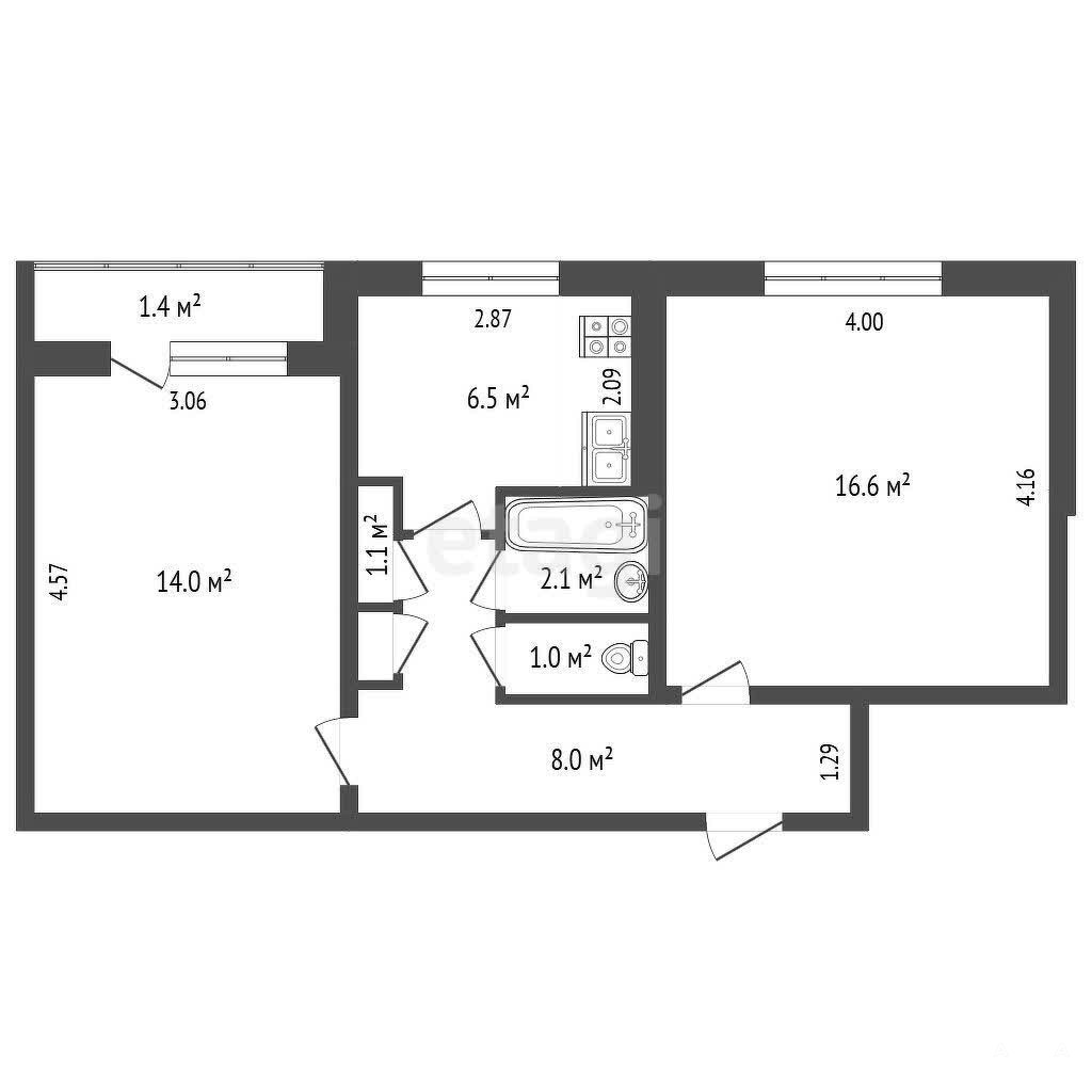 Двухкомнатная квартира площадью 49 кв. м расположена на 8 этаже 9-этажного дома в центральной части Светотехстроя. Планировка отличается рациональностью: изолированные комнаты площадью 19 и 14 кв. м, кухня 6, 5 кв. м с выходом на застекленный балкон.