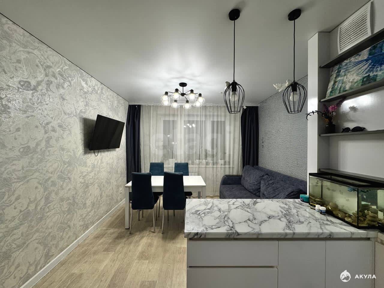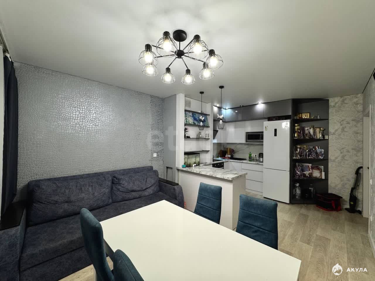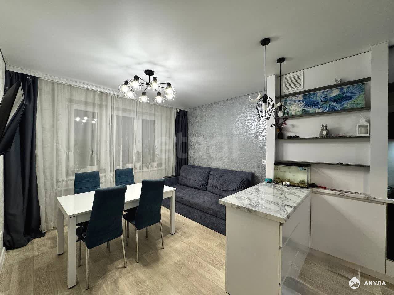 Квартира с современным ремонтом и современной мебелью. Кухня-гостиная имеет отдельную зону для приготовления пищи и приема пищи. Плита индукционная. Балкон застеклен пластиковыми окнами. Зал и две спальни изолированы и полностью укомплектованы мебелью. На входе в квартиру установлена металлическая дверь.