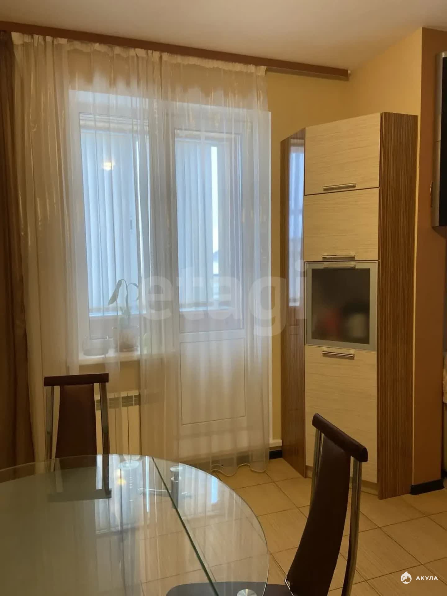 Уютная и светлая кухня -гостиная. Кухонный гарнитур со встроенной техникой: духовой шкаф, варочная поверхность, посудомоечная машина.