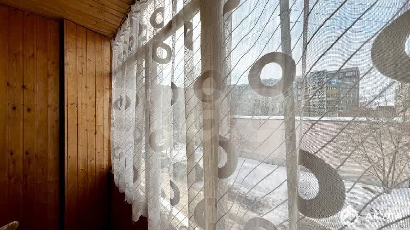 два балкона с деревянными окнами: один выходит во двор, второй — в живописный парк Победы;